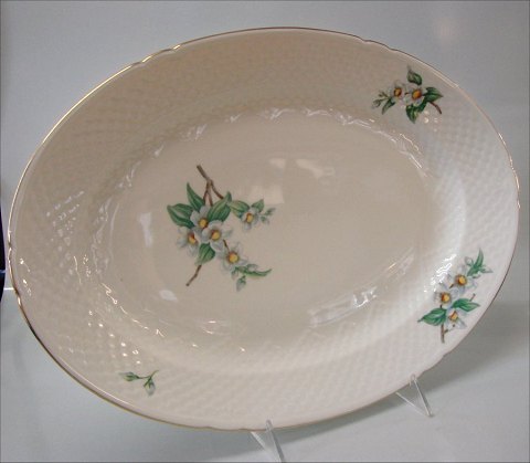 015 Stort ovalt stegefad 40,5 cm (315) Bing & Grøndahl Heimdahl - kremefarvet porcelæn med guldkant dekoreret med Jasmin - ikke at forveksle med Æbleblomst I fin og hel stand