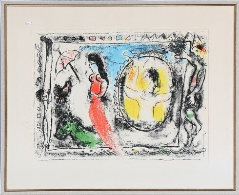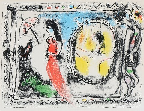 Litografi: Marc Chagall Figurer Ca 51 x 64.5 cm inklusiv glas og ramme