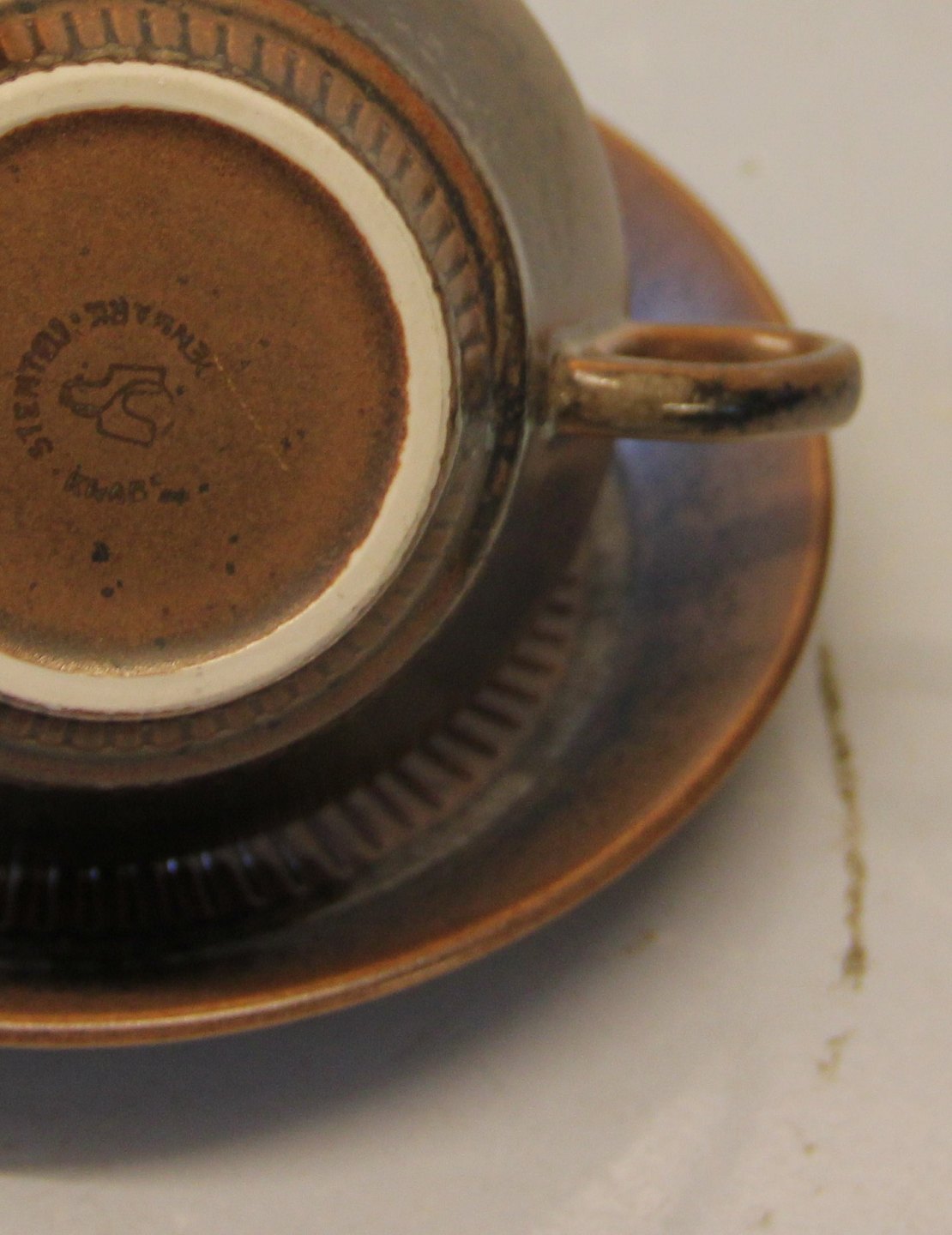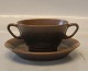Suppekop 11 x 6.5 cm og underskål 16 cm Brunt Knabstrupstel Knabstrup Dansk Keramik