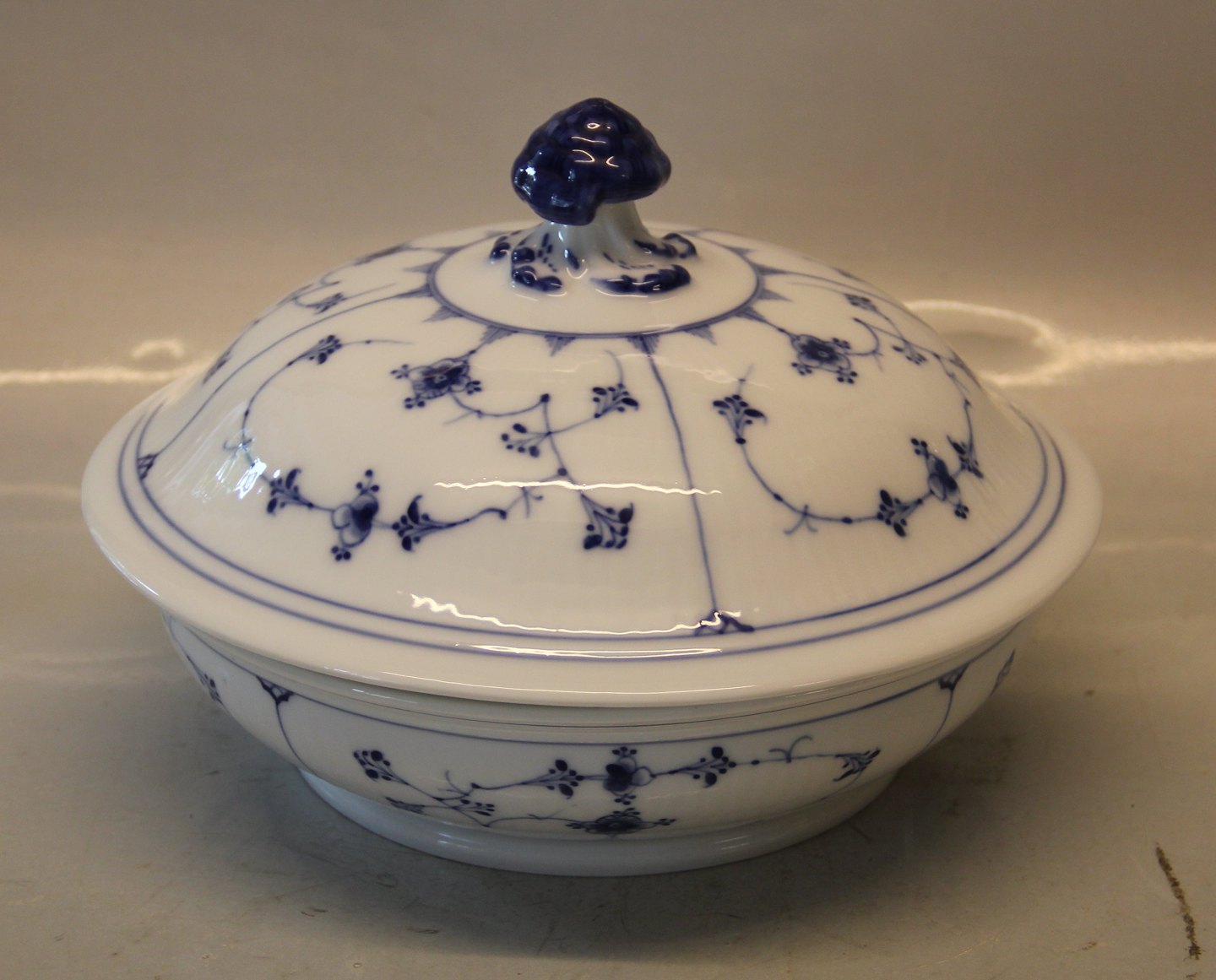 Antikt 397-1 Ragoutfad, rundt på fod, ca 17 x 24,5 cm med låg Kongelig Dansk Porcelæn Musselmalet