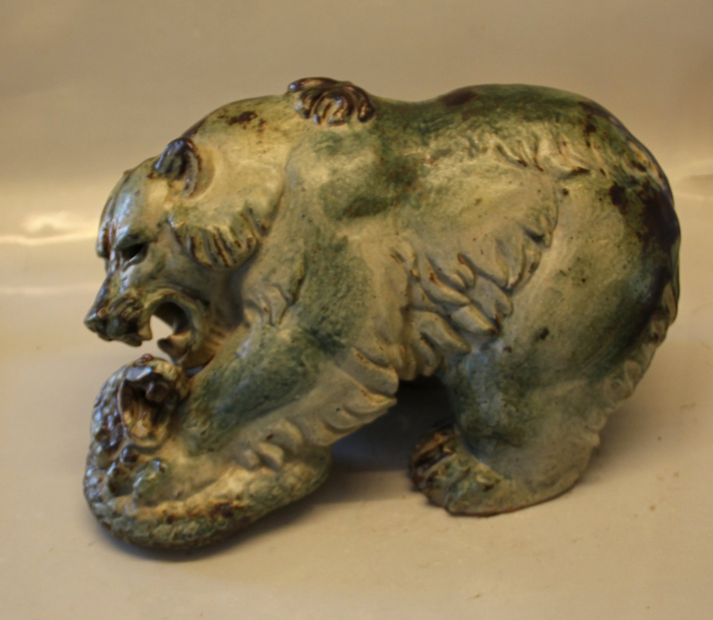 Kongelig Dansk Stentøj 20213 Kgl. Bjørn med slange ca. 20 x 35 cm , Knud Kyhn, november 1929