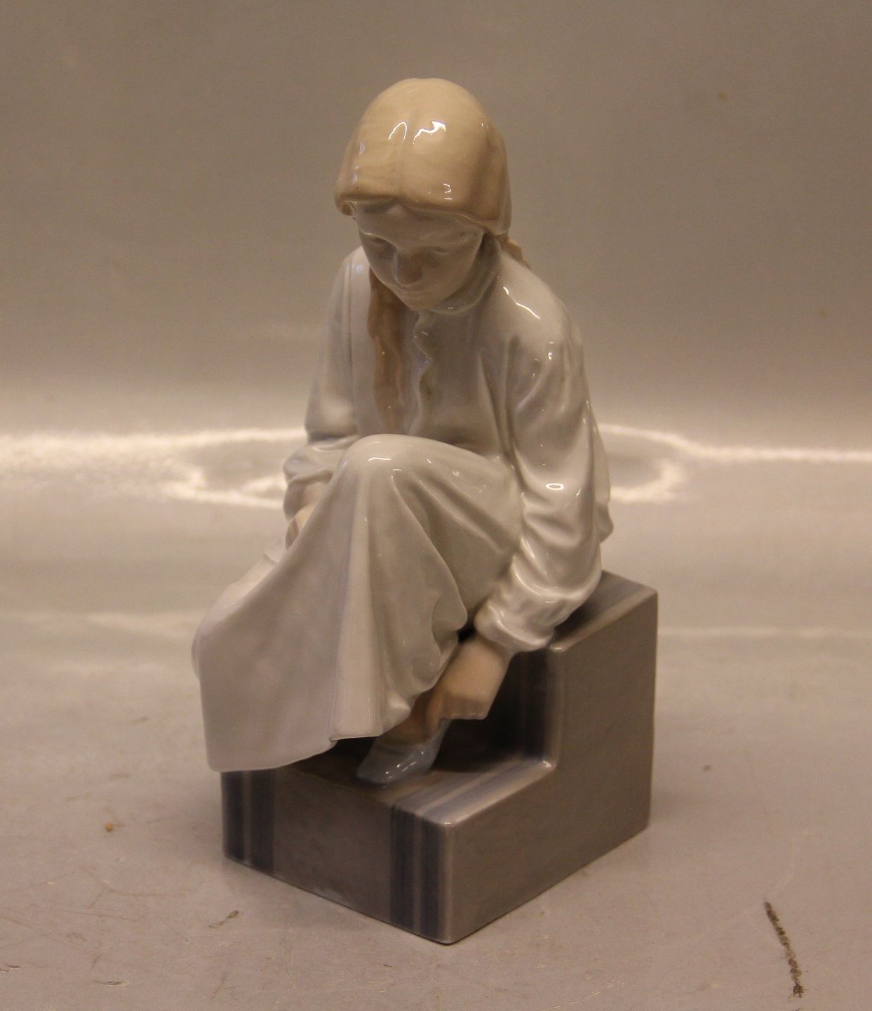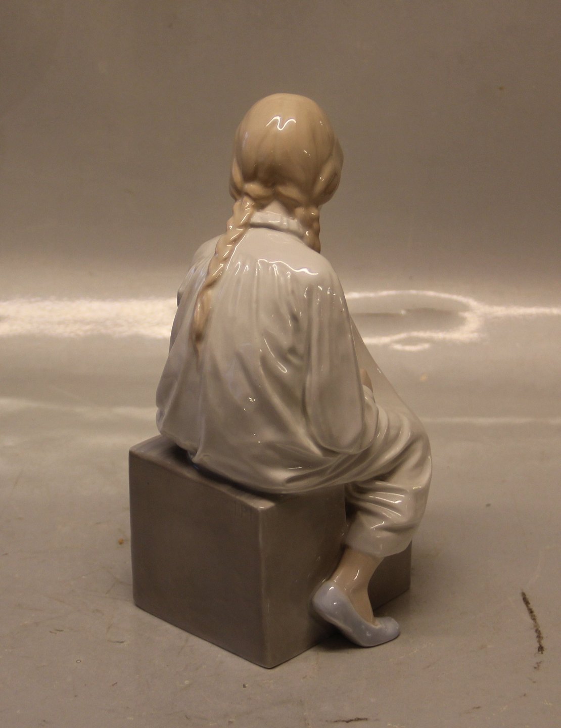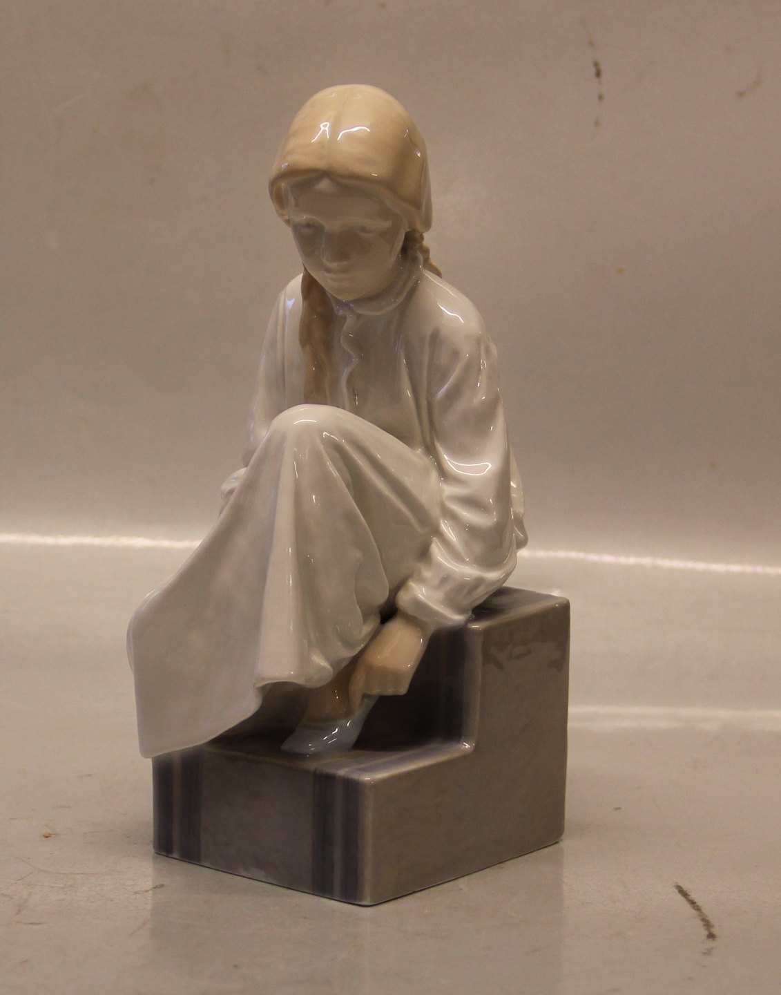 B&G 1841 Siddende pige på trappe 21.5 cm Signeret IPI Bing & Grøndahl