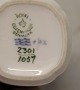 Beskrivelse: Art Nouveau 2301-1057 Kgl. Firkantet Vase 5.5 x 6 cm med brombærblomst og sommerfugl fra Royal Copenhagen I hel og fin stand
