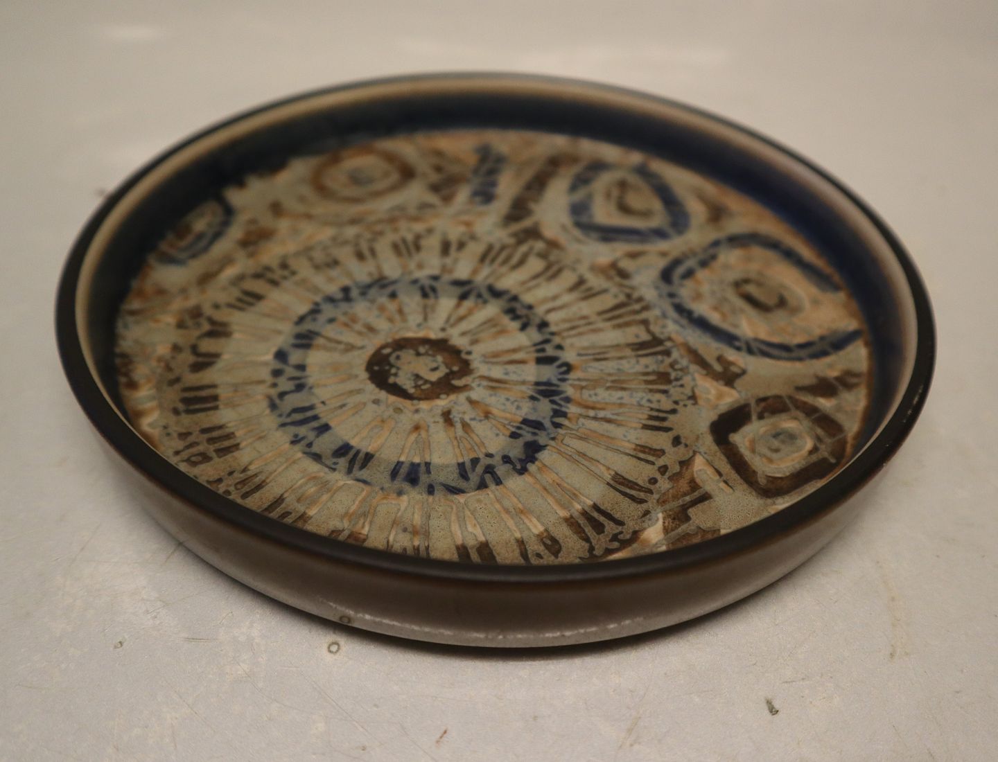 Beskrivelse: 870-3290 Rundt brunt fad 17.5 cm Baca Nils Thorsson Royal Copenhagen Aluminia Baca fajance