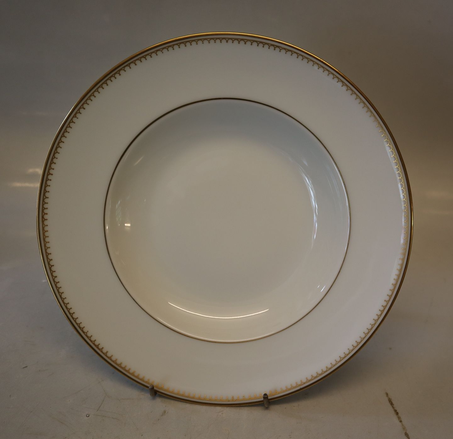 023 Små dybe tallerkner 21,5 cm (323) B&G Menuet: Hvidt porcelæn, takket guldkant, hvid, form 601
