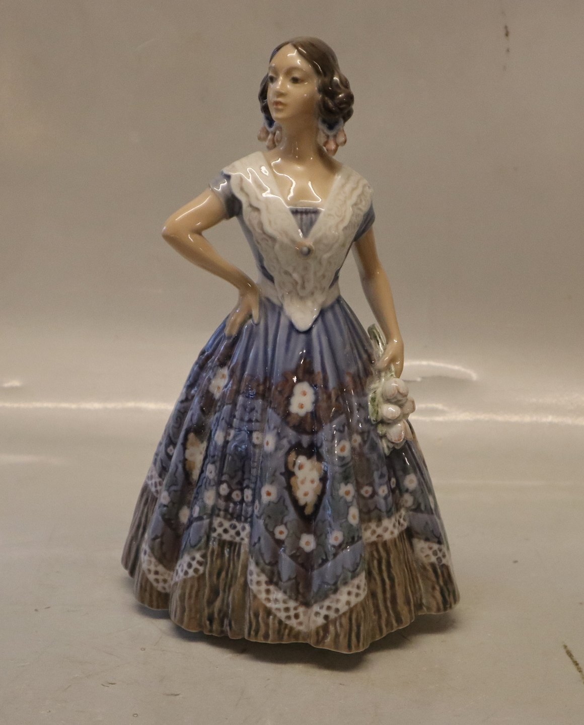 Beskrivelse: Dahl Jensen figur 1124 Spanierinde 25 cm i Blåt i hel og fin stand