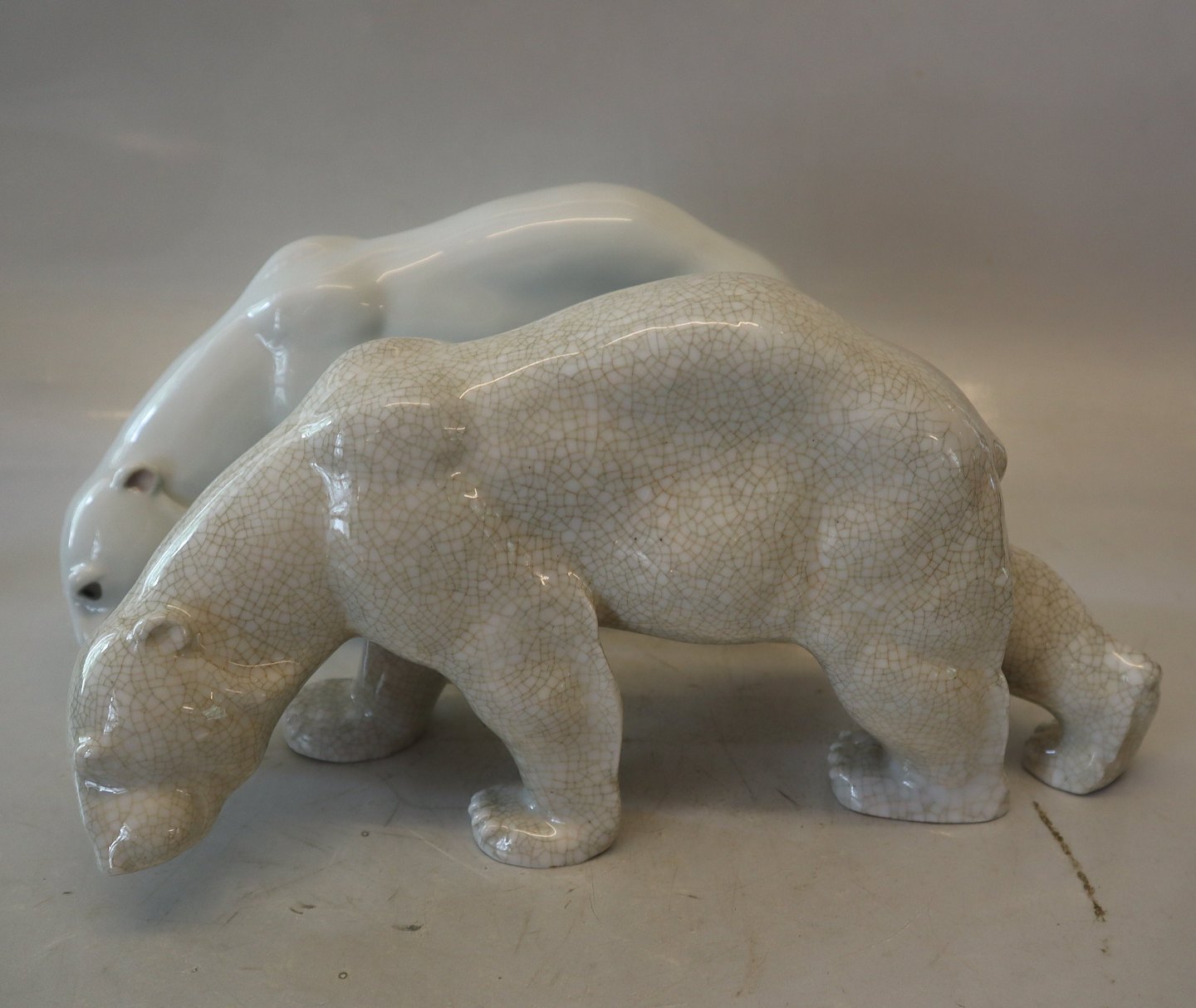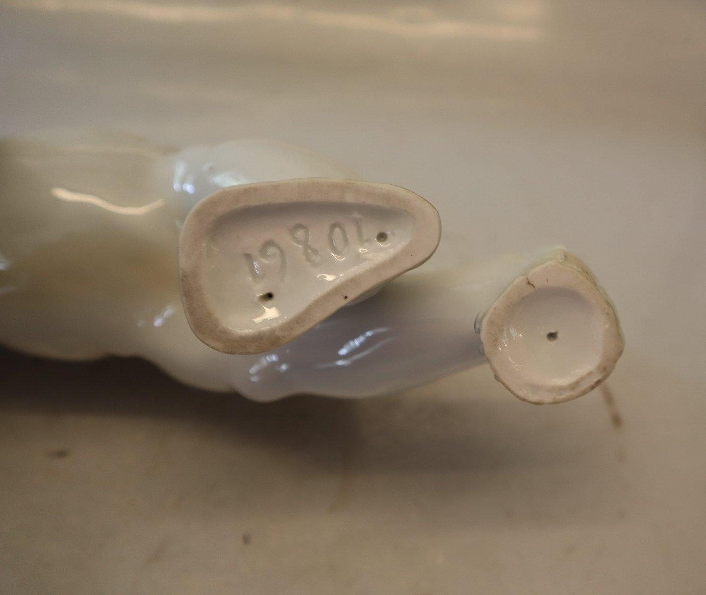 : Heubach 19806 Isbjørn bøjet hoved 15 x 28 cm Tysk porcelænsfigur I fin og hel stand