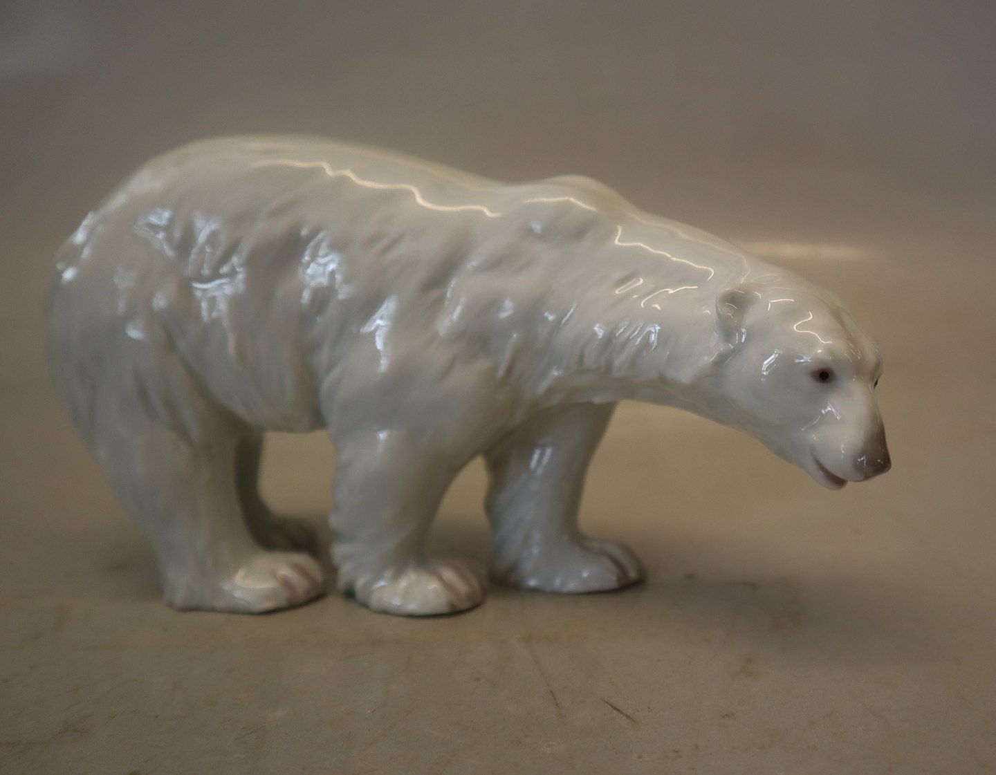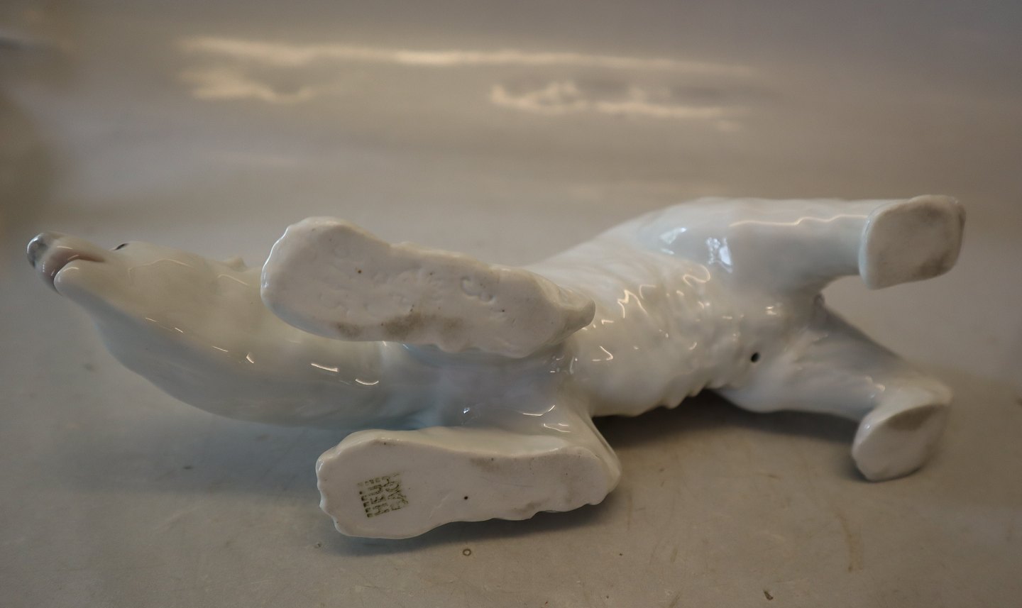 : Heubach Isbjørn dukker sig 10 x 23 cm Tysk porcelæn i fin og hel stand