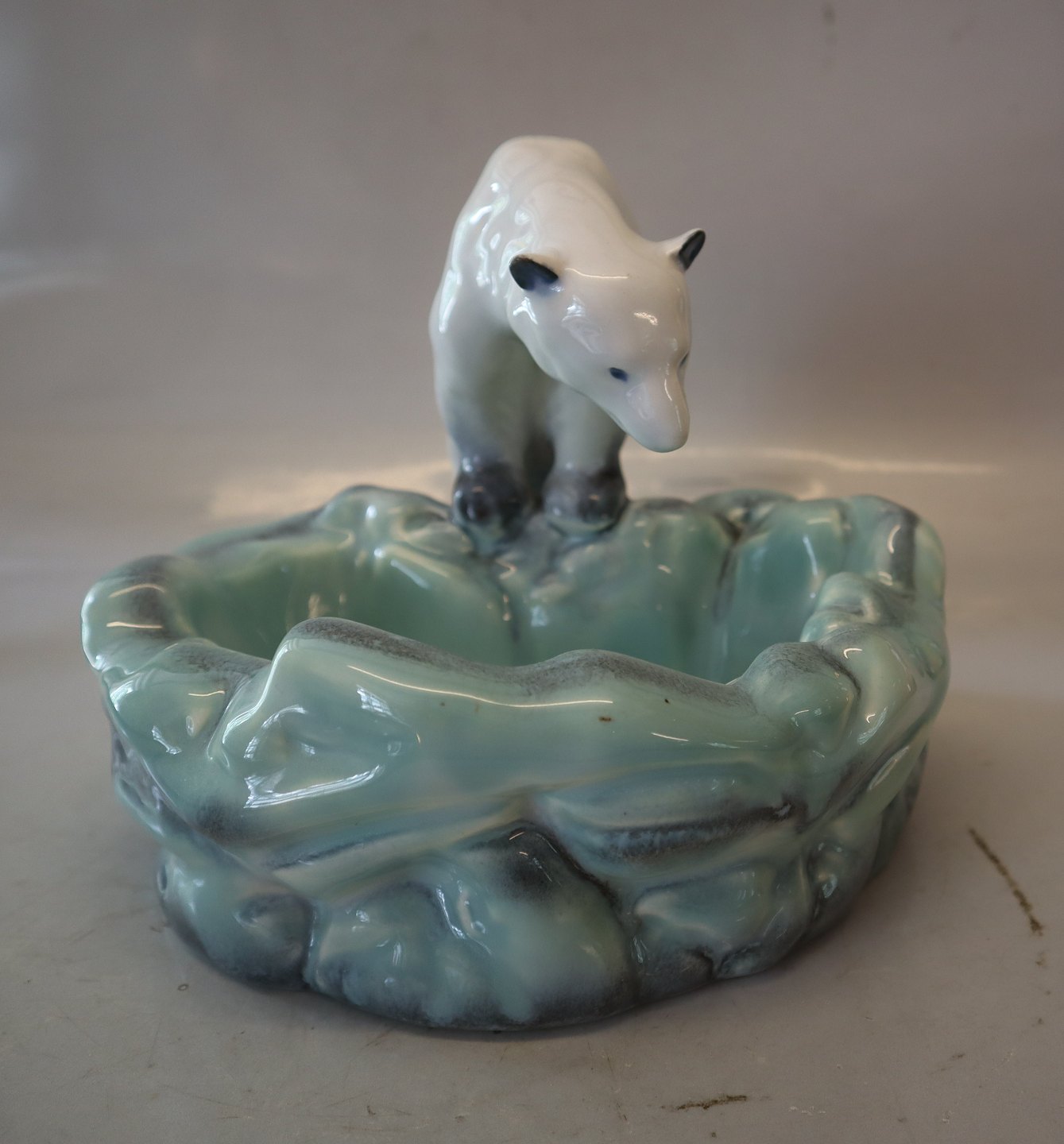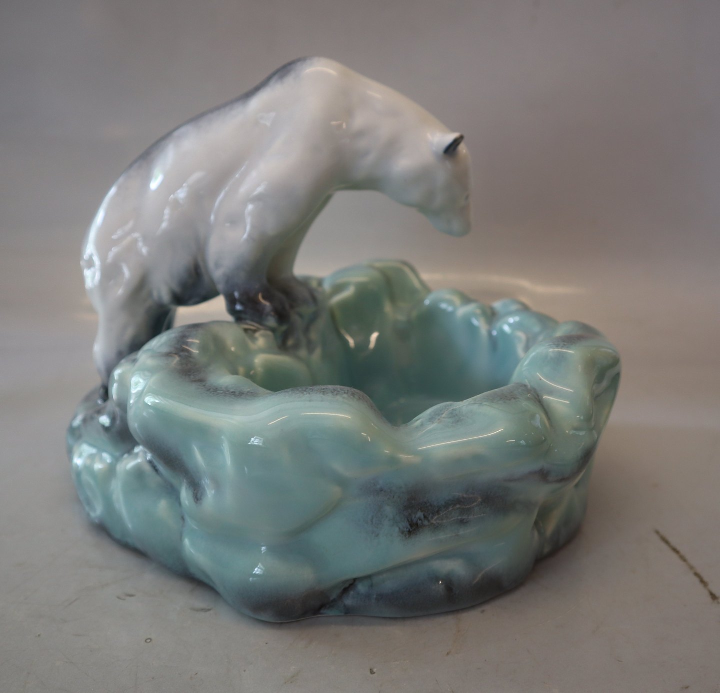 Beskrivelse: Isbjørn på kanten af klippepool 19 x 22 cm Made in Czechoslovakia
