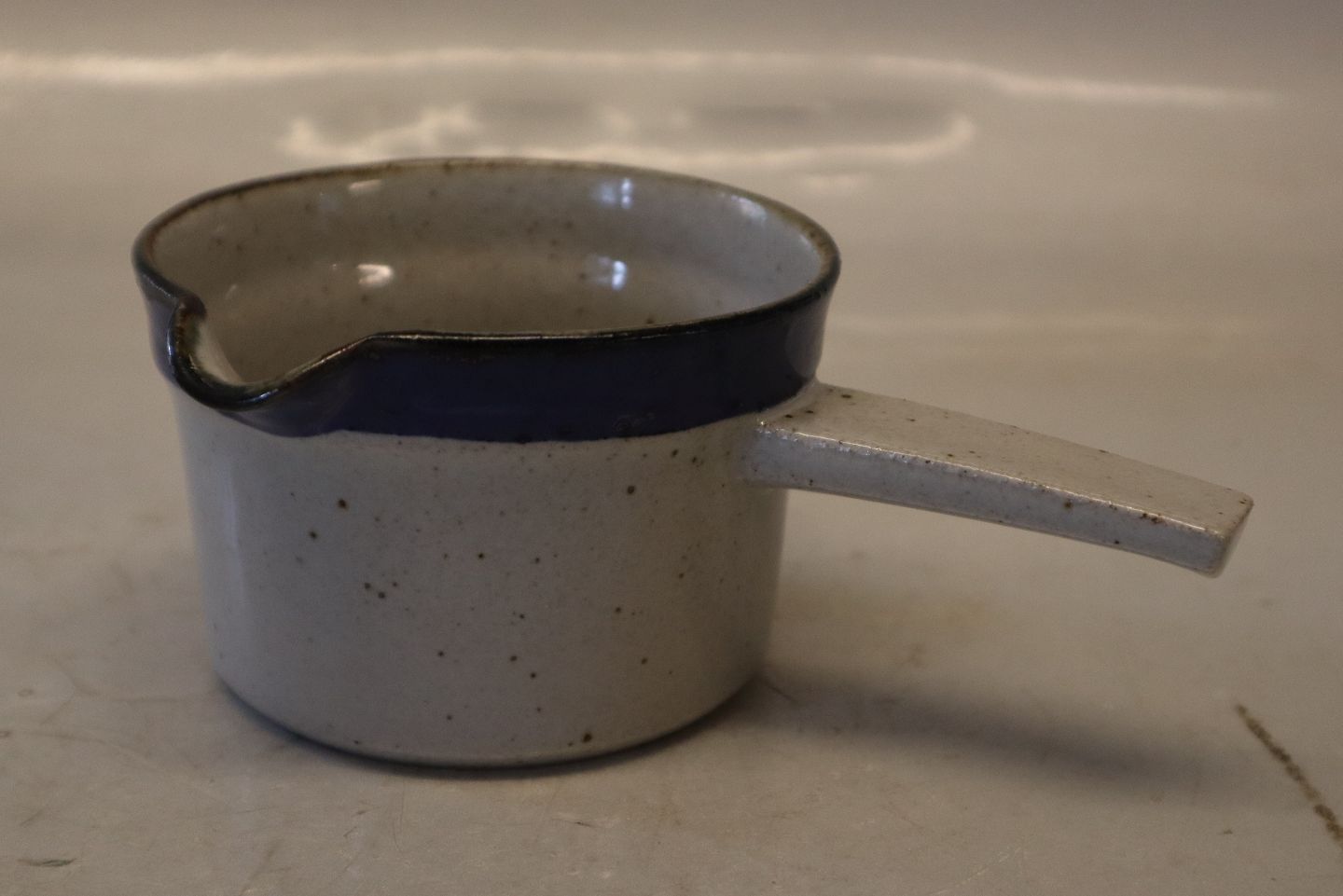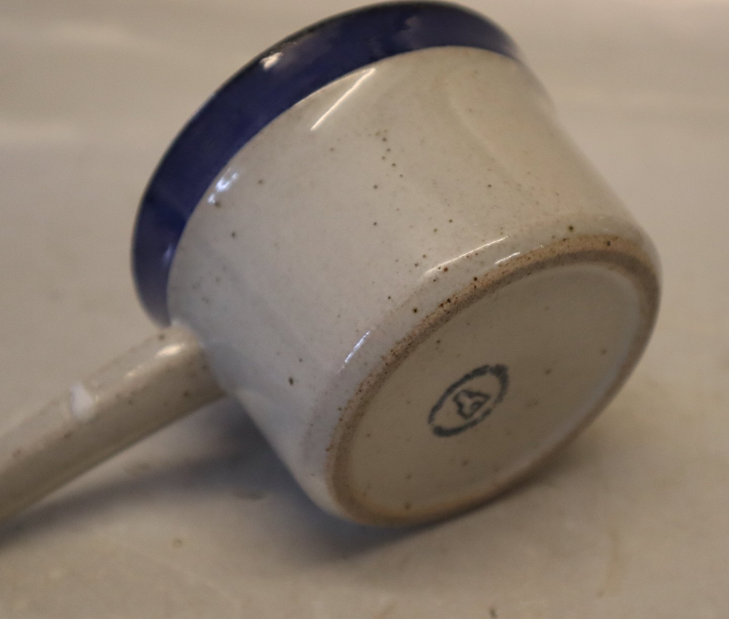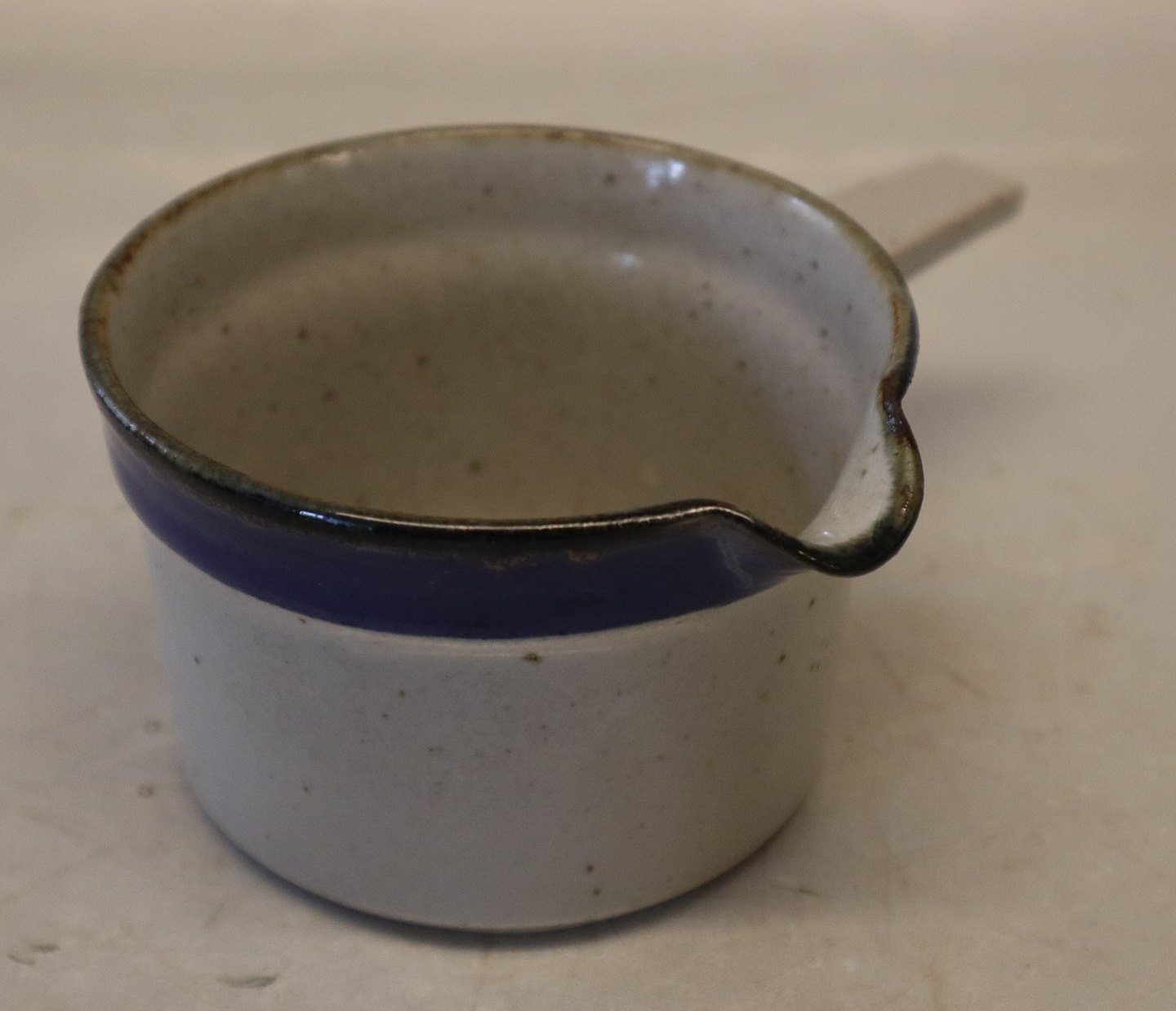 Smørsauce kande med hank 6.5 x 16 cm Christine, Knabstrup Keramik Testel - gråt med blå kant, Spisestel, Kaffestel