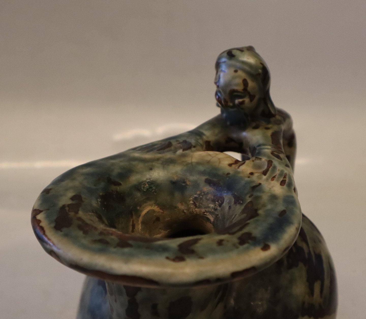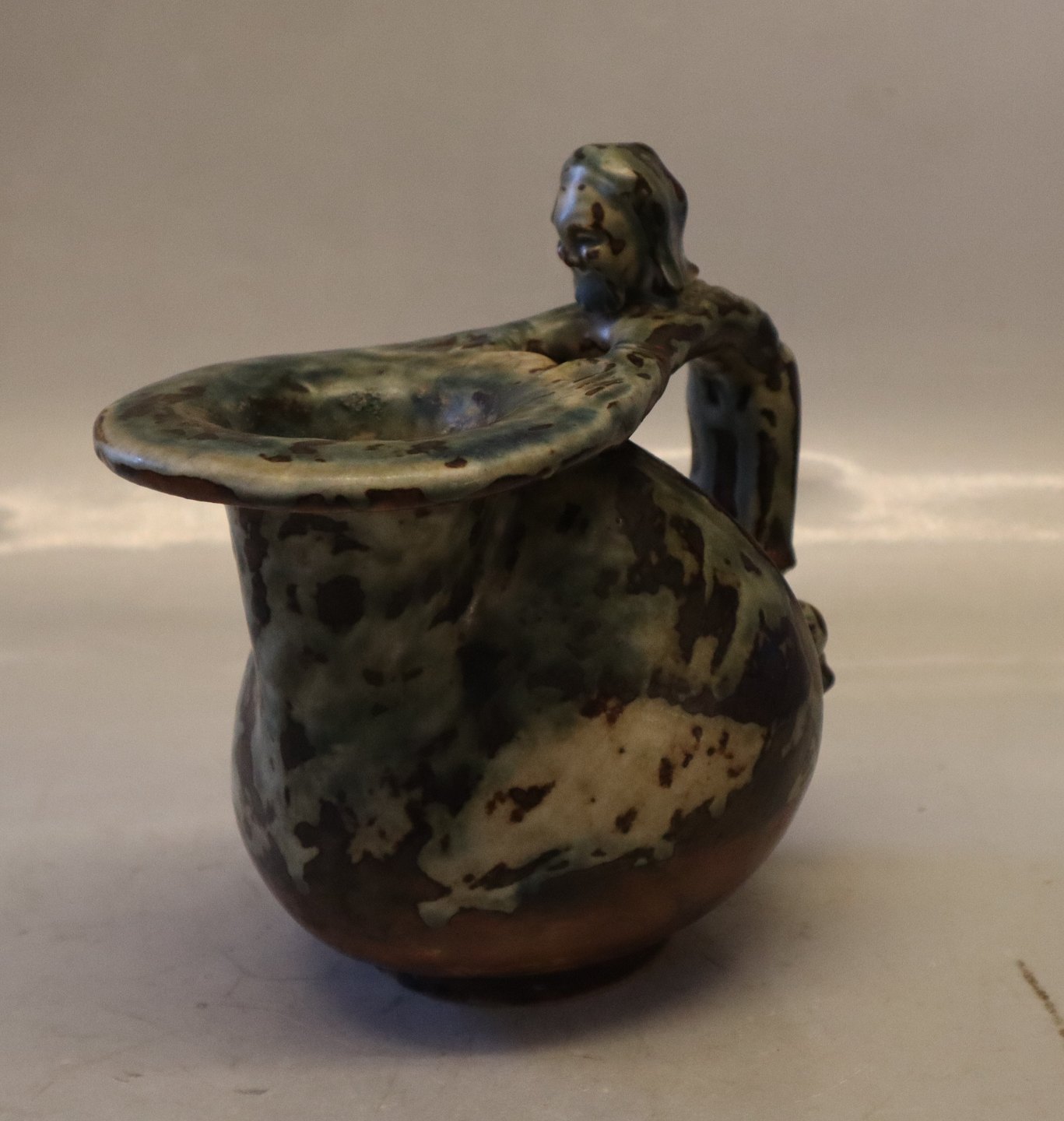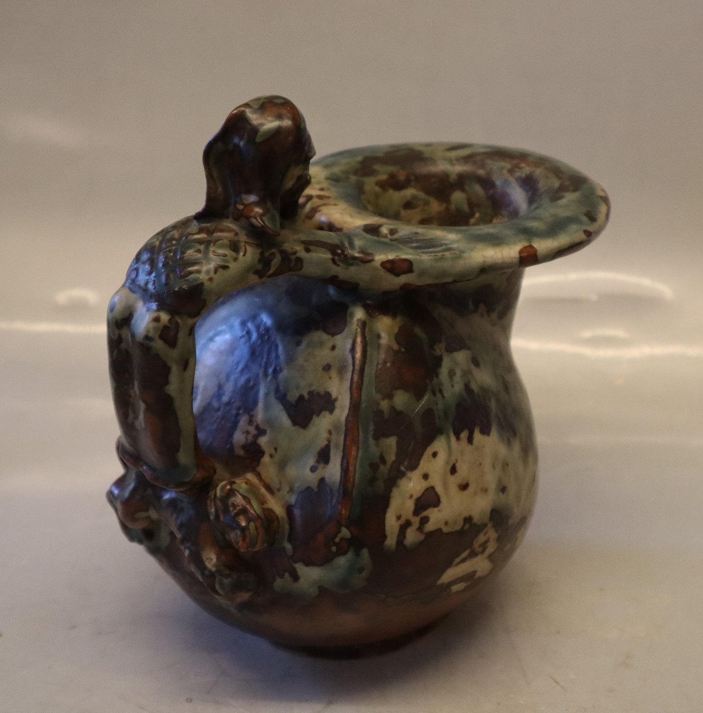 20147 Kgl. Vase 19 x 18 cm, Bode Willumsen, sept. 1927 sung glasur Kongelig Dansk Stentøj