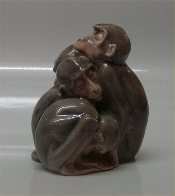 : Bing & Grøndahl B&G 1581 Abefamilie - fire stk. IPI 13 cm I fin og hel stand.