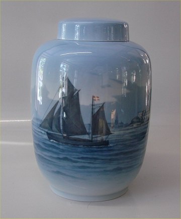 : Royal Copenhagen 2562-888 Vase med låg marinemotiv. 22 cm I hel og fin stand