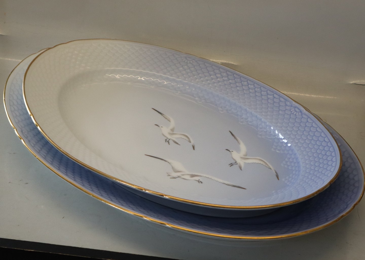 014 Stort ovalt stegefad 46 cm B&G Mågestel med guldkant
