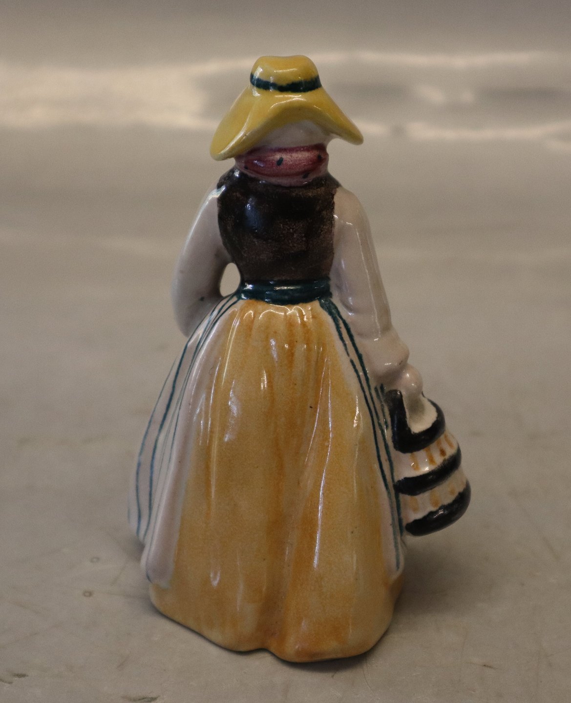 Beskrivelse: Michael Andersen & Søn Bornholm miniature 5311 Kvinde med gul hat 12 cm