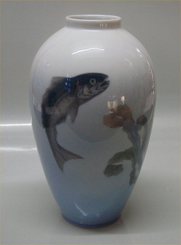 : Kongelig Dansk Porcelæn Vase 0258-47 d 22,5 cm Dekoreret med fisk og tang I fin og hel stand