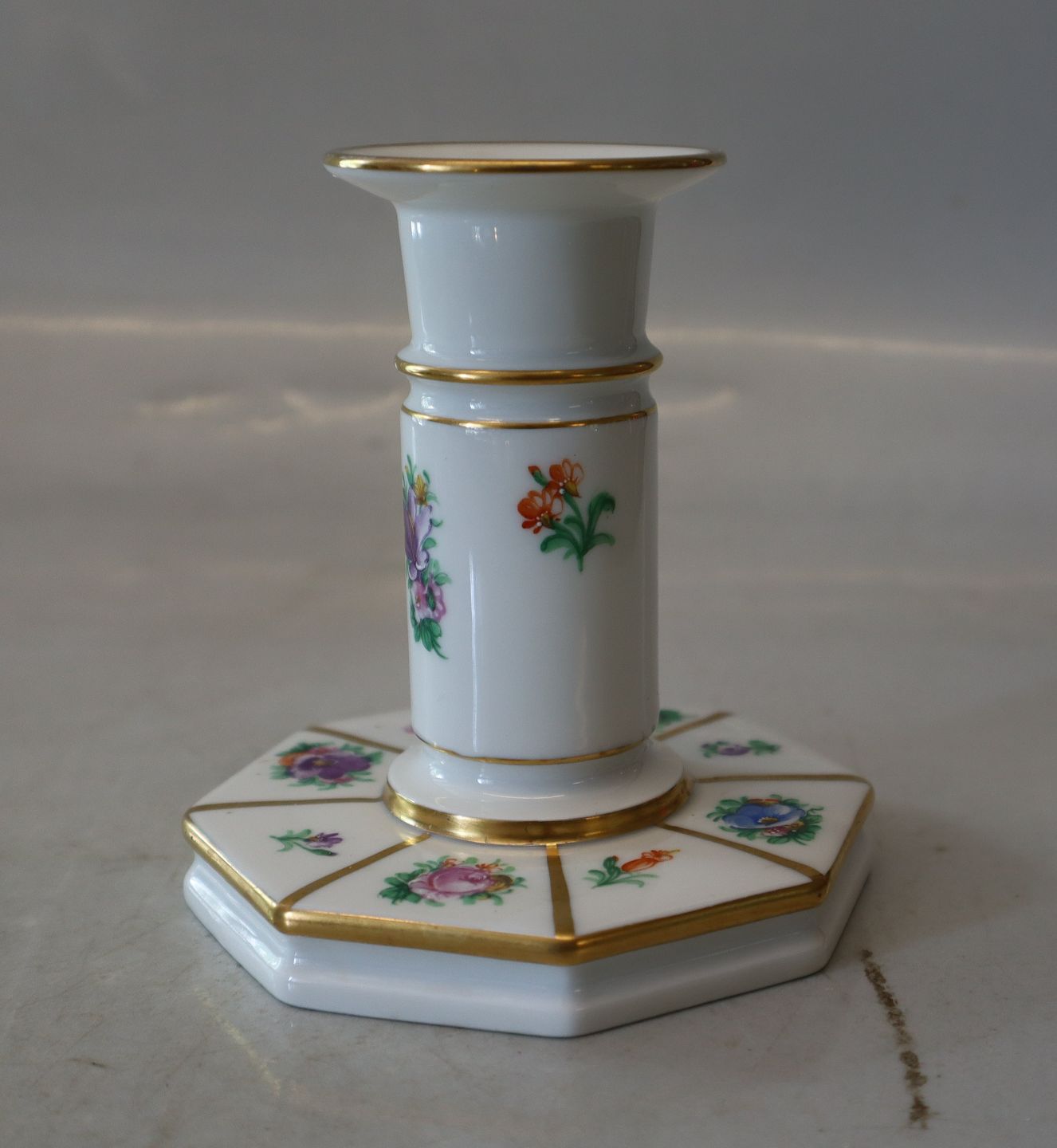 3303-444 Lysestage 11 cm x 9.5 cm Kgl. Henriette # 444 Håndmalet spise- og kaffestel fra Den kongelige Porcelænsfabrik med strøblomster . I fin og hel stand