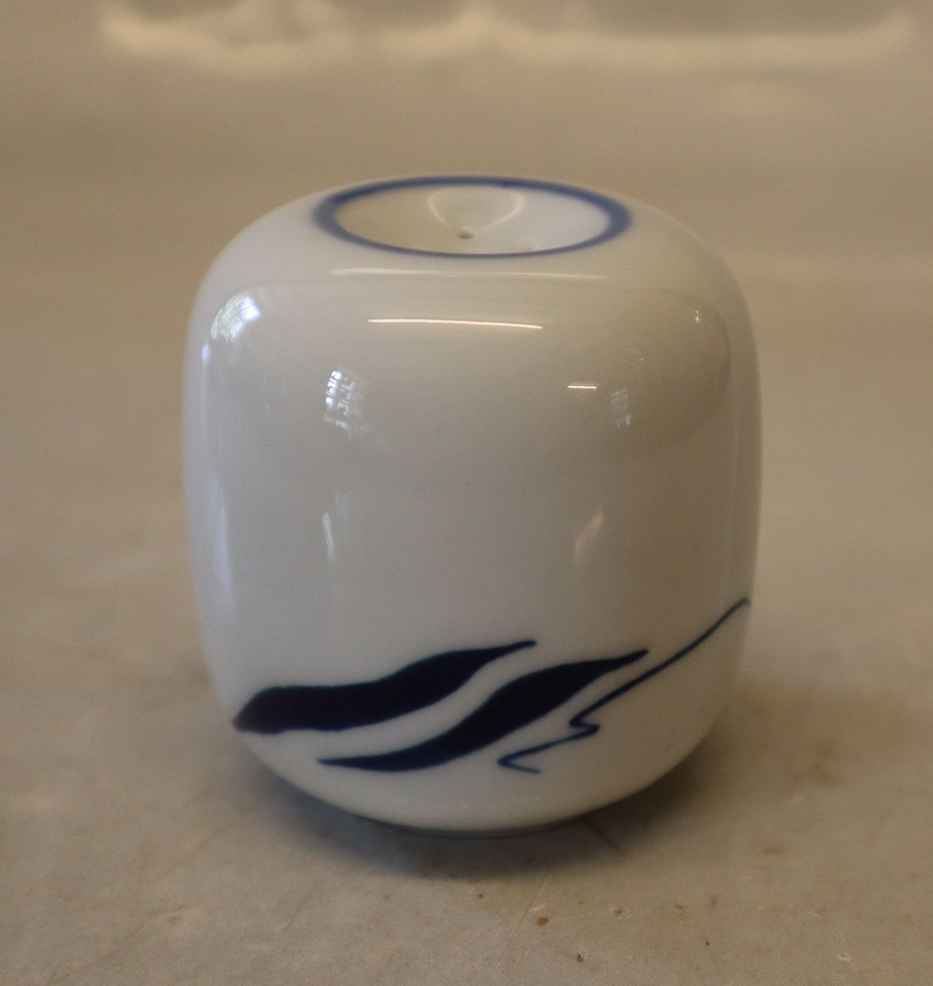 Peber 5.5 cm Scandinavia. Desiree Stellets runde former er dækket med en silkeblød glasur og håndmalet med er lys almueblå farve lagt under glasuren.