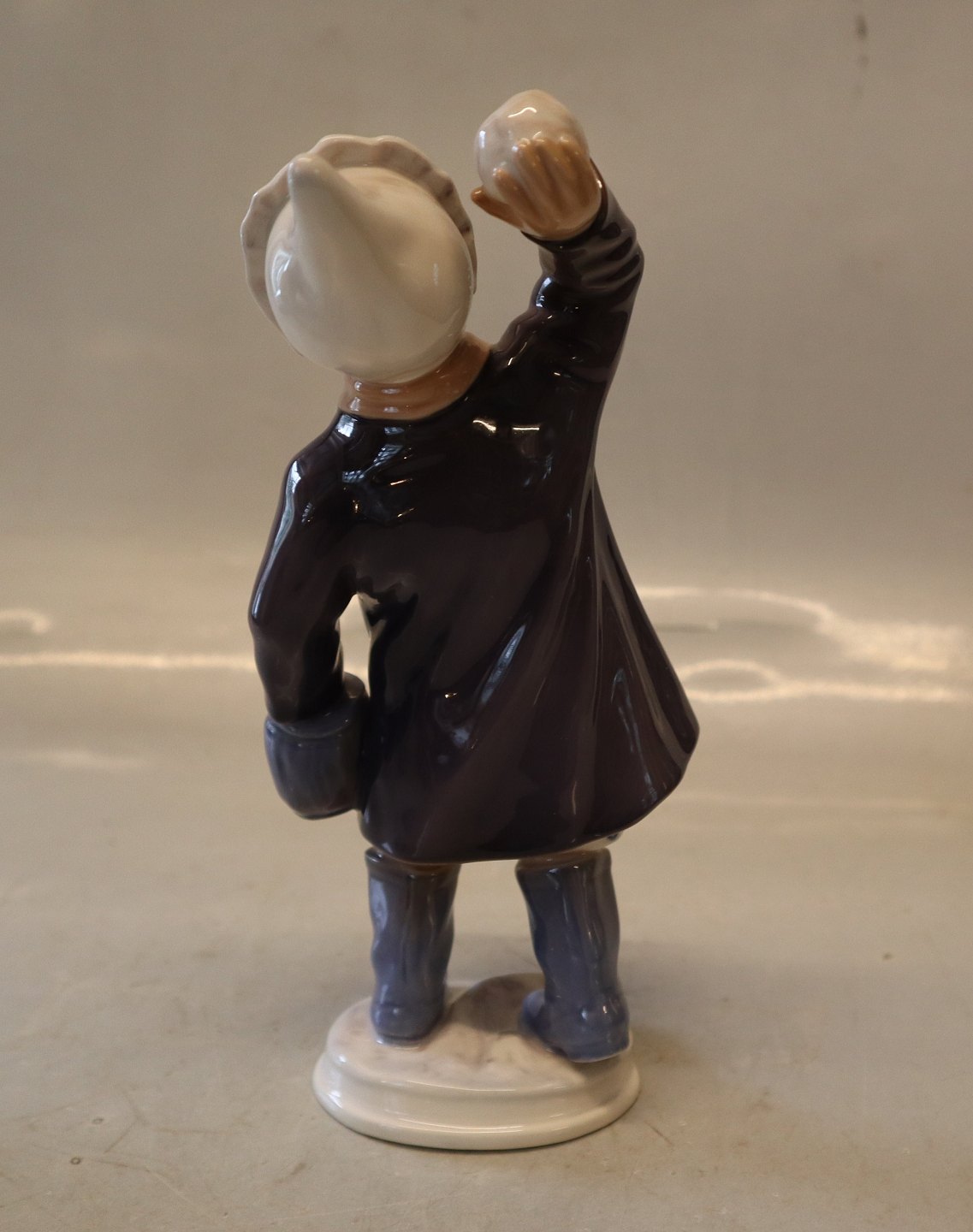 Beskrivelse: Dahl Jensen 1180 Pige med snebold (DJ) 19 cm. Mærket med kongelig krone og DJ Copenhagen i hel og fin stand. 2. sort