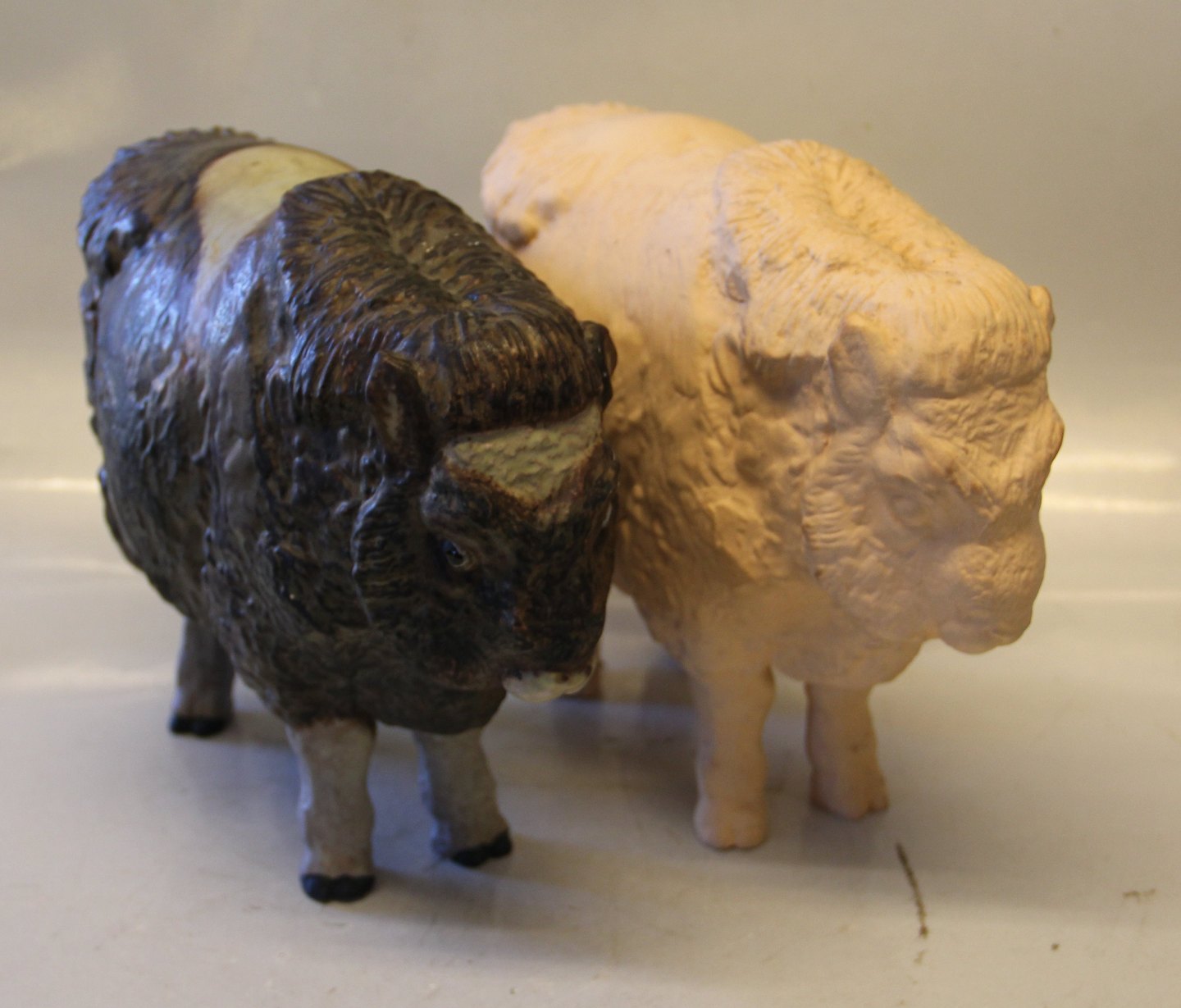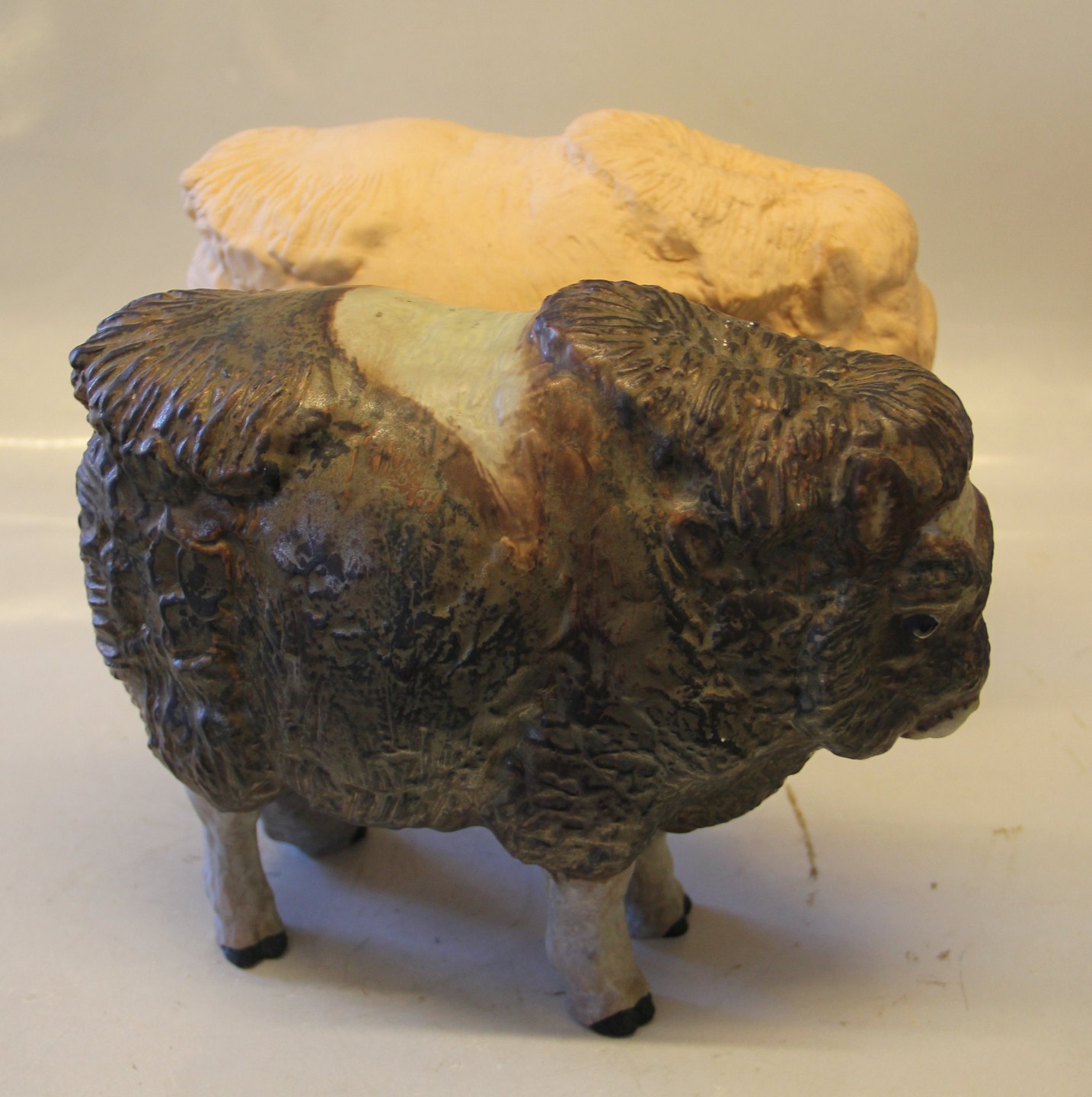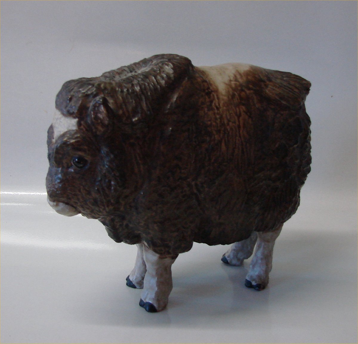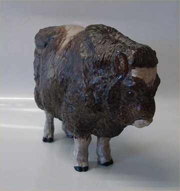 Beskrivelse: Royal Copenhagen Aluminia fajance 3149 Moskus Okse Jeanne Grut ca. 22 x 26 cm glaseret JG