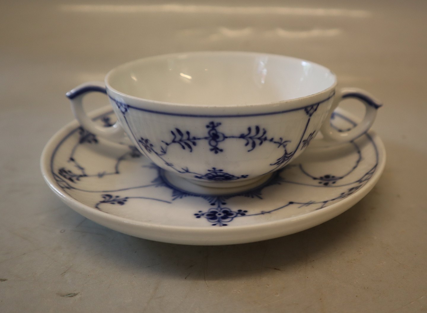 Kongelig Dansk Porcelæn Musselmalet 344-1 Bouillonkop, halvtynd, m/to hanke med underkop