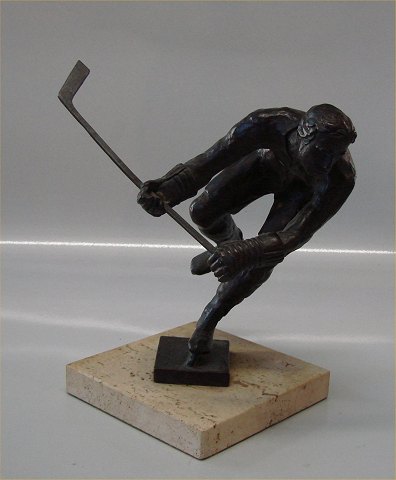 Beskrivelse: Hockey spiller Sterett-Gittings Kelsey Bronze Ishockeyspiller 21 cm på marmorfod 12.5 x 12.5 cm