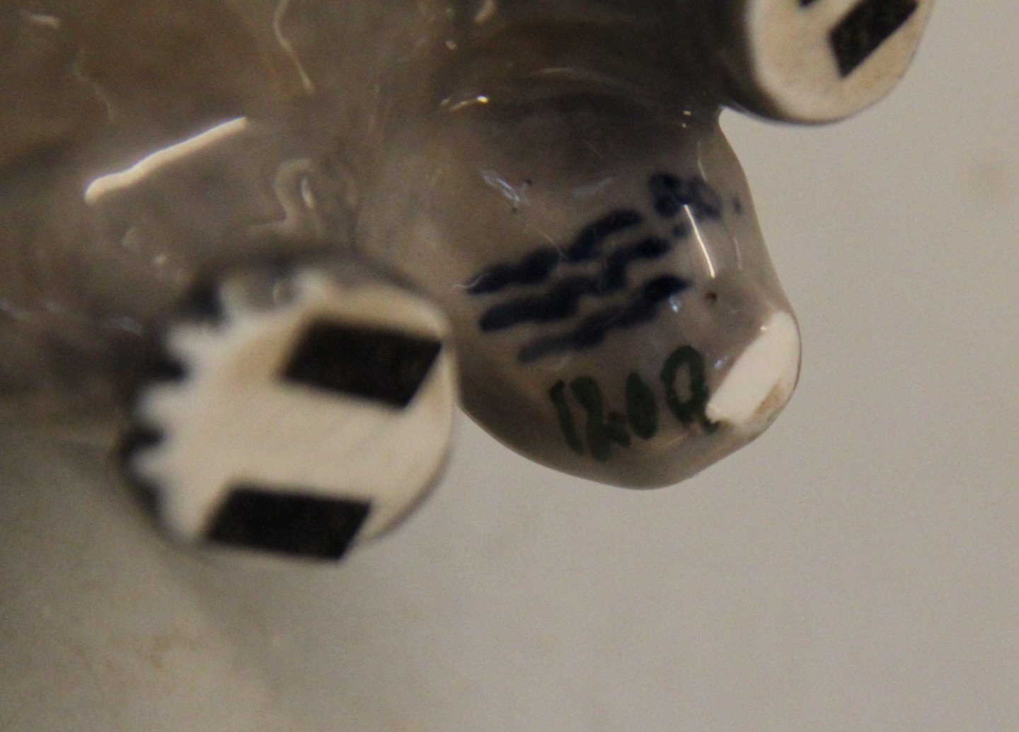 : Kgl. figur fra Royal Copenhagen 1209 Grævling 9 x 19 cm før 1923 I hel og fin stand