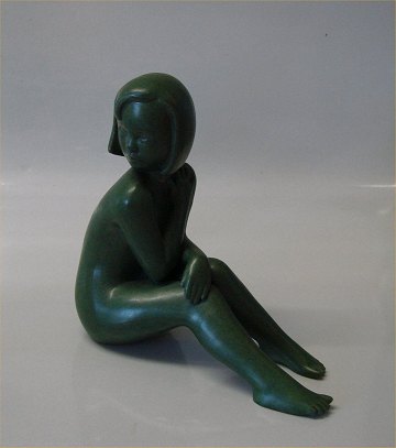 : 00935 Ipsen Susanne (siddende pige) 16 cm grøn jadeglasur Ipsens Enke
