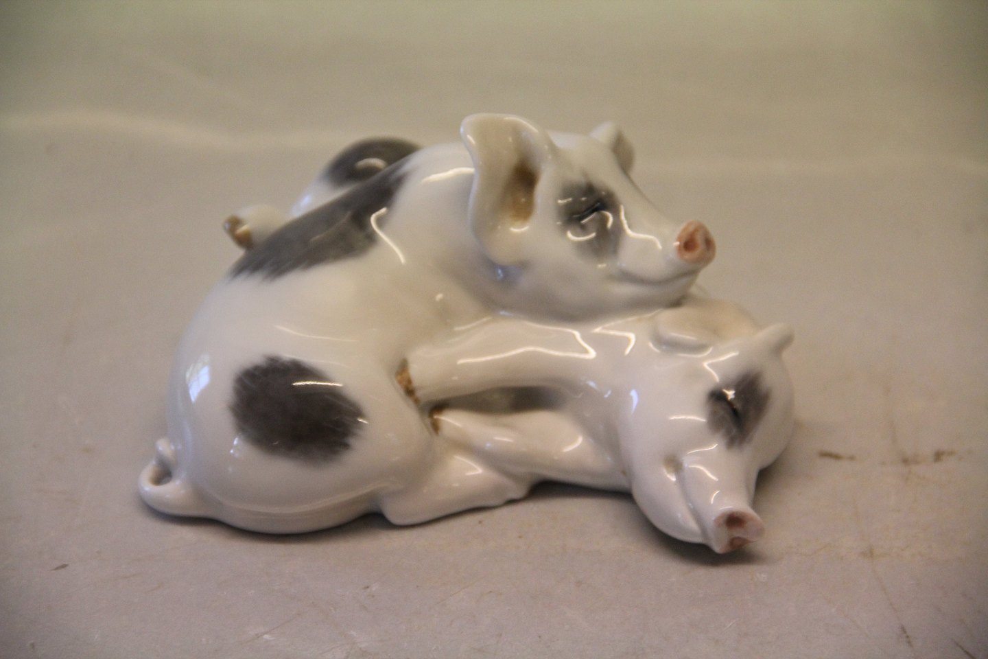 Beskrivelse: Kgl. svin fra Royal Copenhagen 683 Grise - brogede Erik Nielsen 1906 6 x 12 cm 1. sortering I hel og fin stand