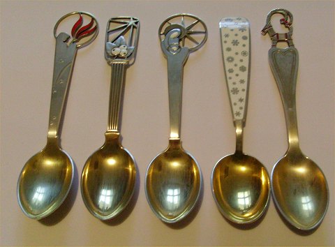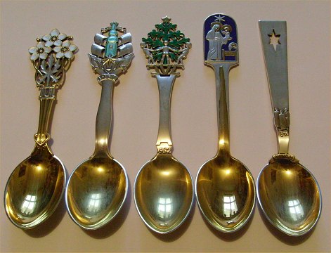 Beskrivelse: Anton Michelsen Juleskeer og Gafler fra 1921 til 1964. Emalje på alle skeer og gafler er perfekt.