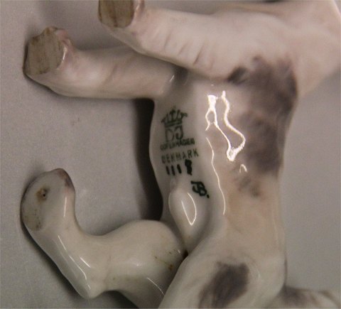 Beskrivelse: Dahl Jensen hund 1118 Ruhåret foxterrier (DJ) 9,5 cm. Mærket med kongelig krone og DJ Copenhagen 1. sortering i hel og fin stand.