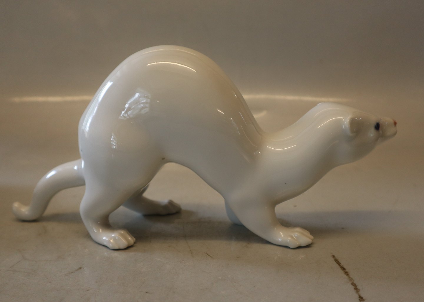 Beskrivelse: Kgl. figur fra Royal Copenhagen 4562 Kgl. Væsel JG 11,5 x 25 cm I hel og fin stand 4562 RC Stoat JG 11.5 x 25 cm Design Jeanne Grut Mink