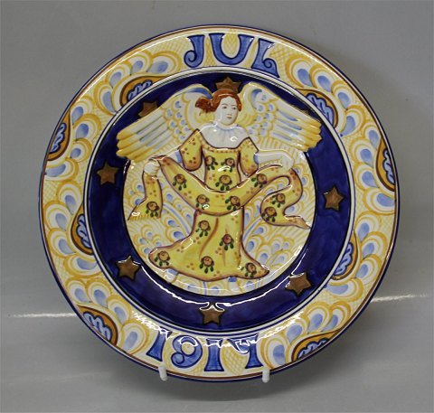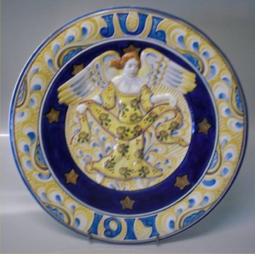 1917 Den kongelige porcelænsfabriks Store Juleplatter af Fajance fra Aluminia 1125-1003 Large Christmas Plates 1917 Angel with ribbon Rasmus Harboe 30 cm
