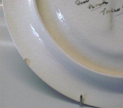 1927 Den kongelige porcelænsfabriks Store Juleplatter af Fajance fra Aluminia 1388-1321 Julerelief 1927 Engel med krydsede hænder og skriftbånd R. Harboe 31,5 cm