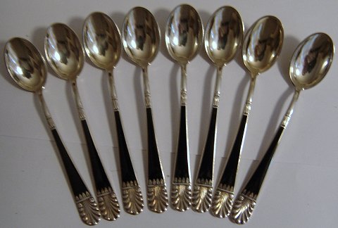 8 Norske Sølv emalje mokkaskeer af J. Tostrup