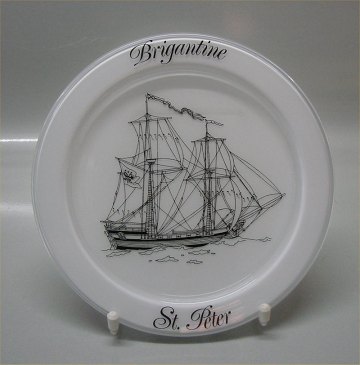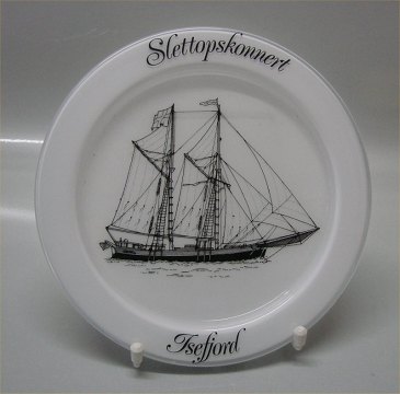 Beskrivelse: Skibsplatte, Holmegaard 19,5 cm Serie af glasplatter med silketryk af danske skibstyper med 1971 til 1990. Design Michael Bang (1944 -) for Holmegaard Glasværk