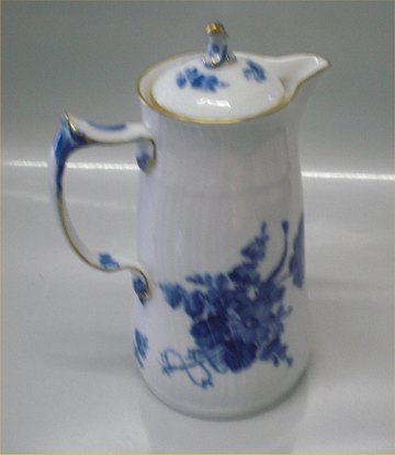 Beskrivelse: Kongelig Dansk Porcelæn Blå Blomst Svejfet 1512-10 Chokoladekande, rund 22 cm med guld I fin og hel stand