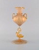 Barovier and Toso, Venice. Large vase in mouth-blown art glass with inlaid bubbles and gold decoration. Italian design, 1960s. |