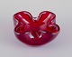 Organically shaped Murano bowl in mouth blown art glass. Red shades. Italian design, 1960s. |