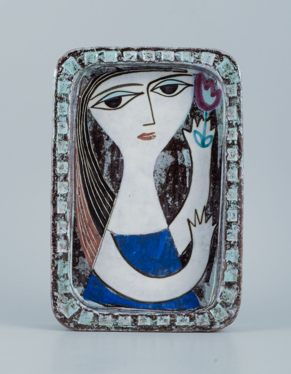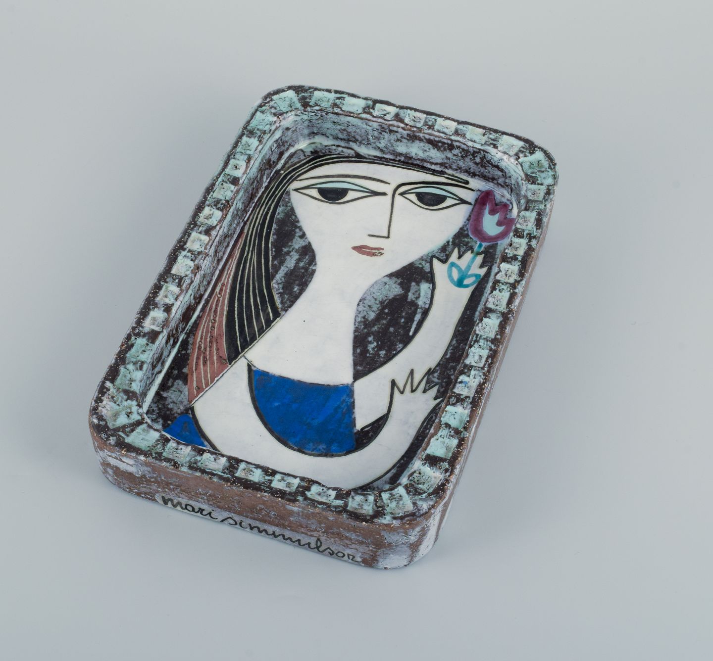 Mari Simmulson for Upsala-Ekeby. Dish in glazed stoneware with portrait of woman.