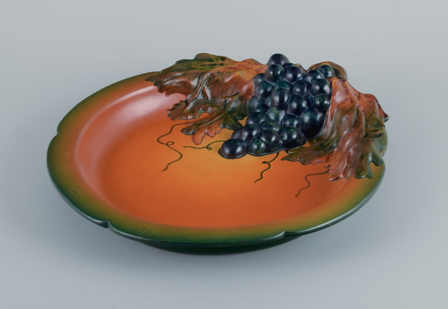 Ipsen's, Denmark. Art nouveau dish in hand-painted ceramics with grape vine and foliage.