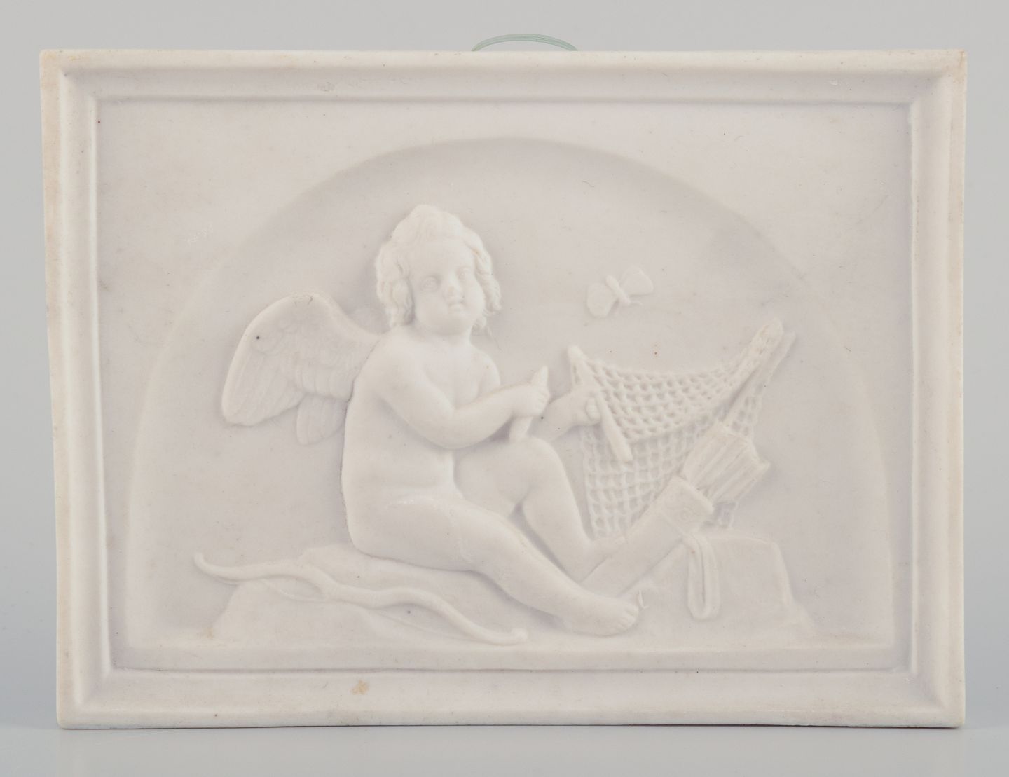 Bertel Thorvaldsen for Bing & Grøndahl. Amor makes a net. Biscuit relief.