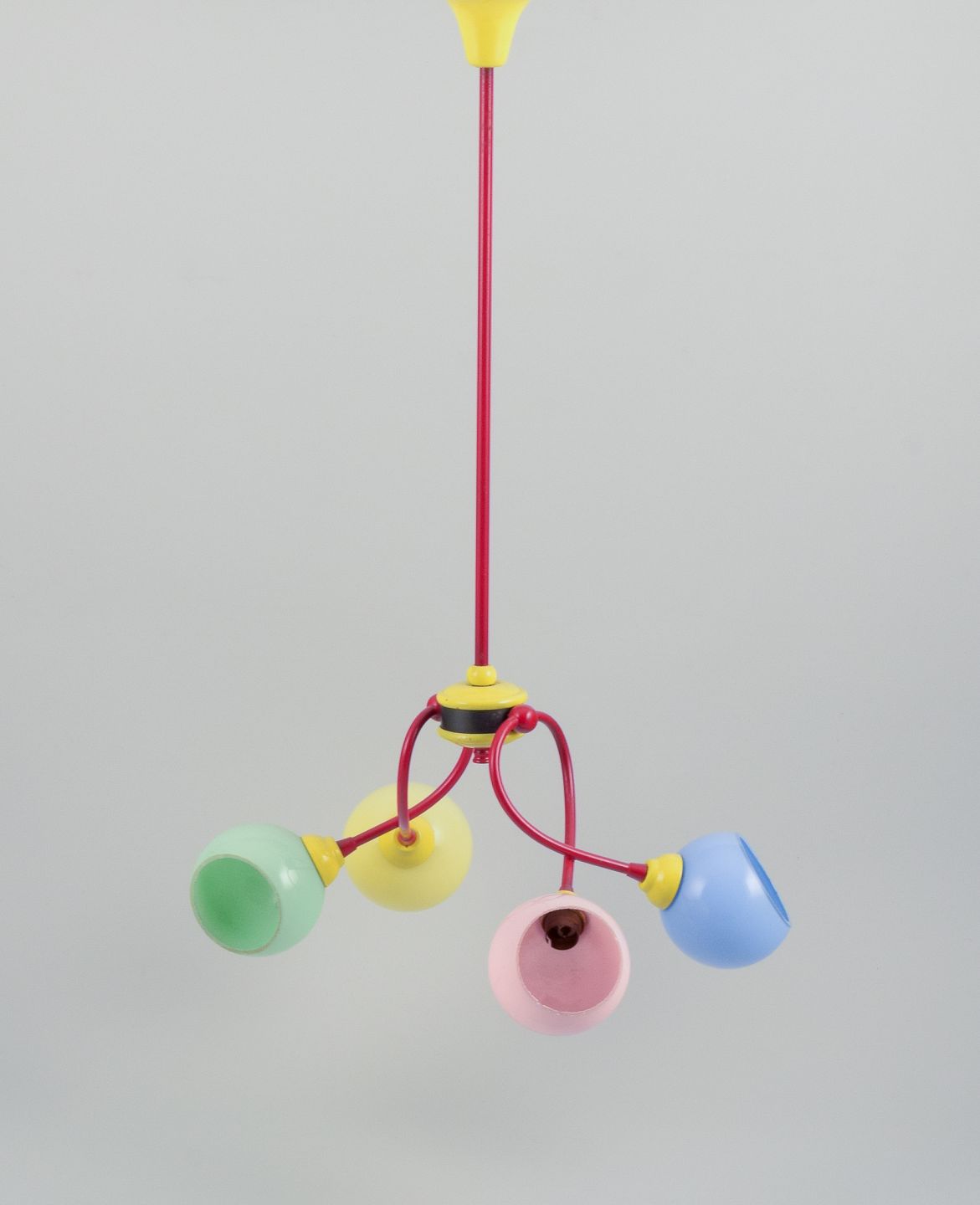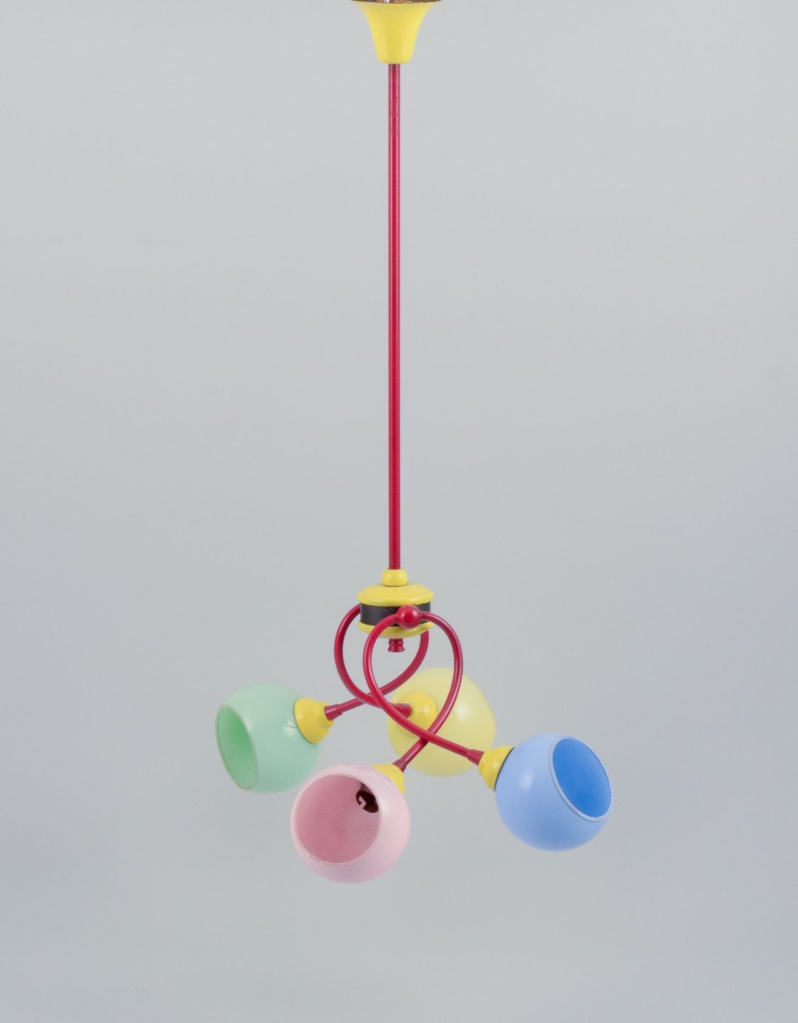 Murano, Italy. "Tutti Frutti" chandelier in colored metal, with mouth-blown polychrome glass shades. 1970s.