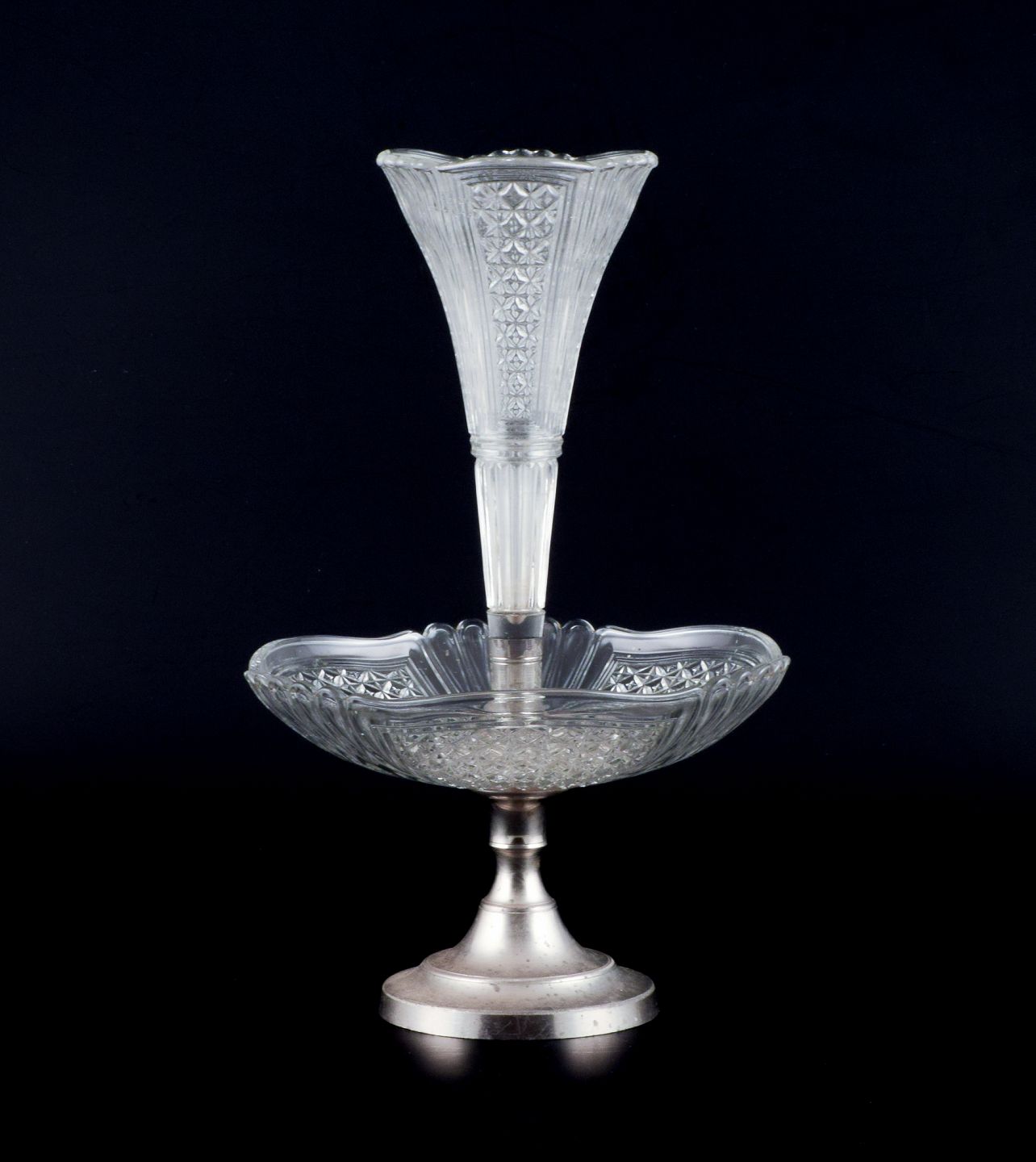 Val St. Lambert, Belgium. Elegant two-part Art Deco centerpiece in art glass. Handmade crystal glass with air bubbles from production.