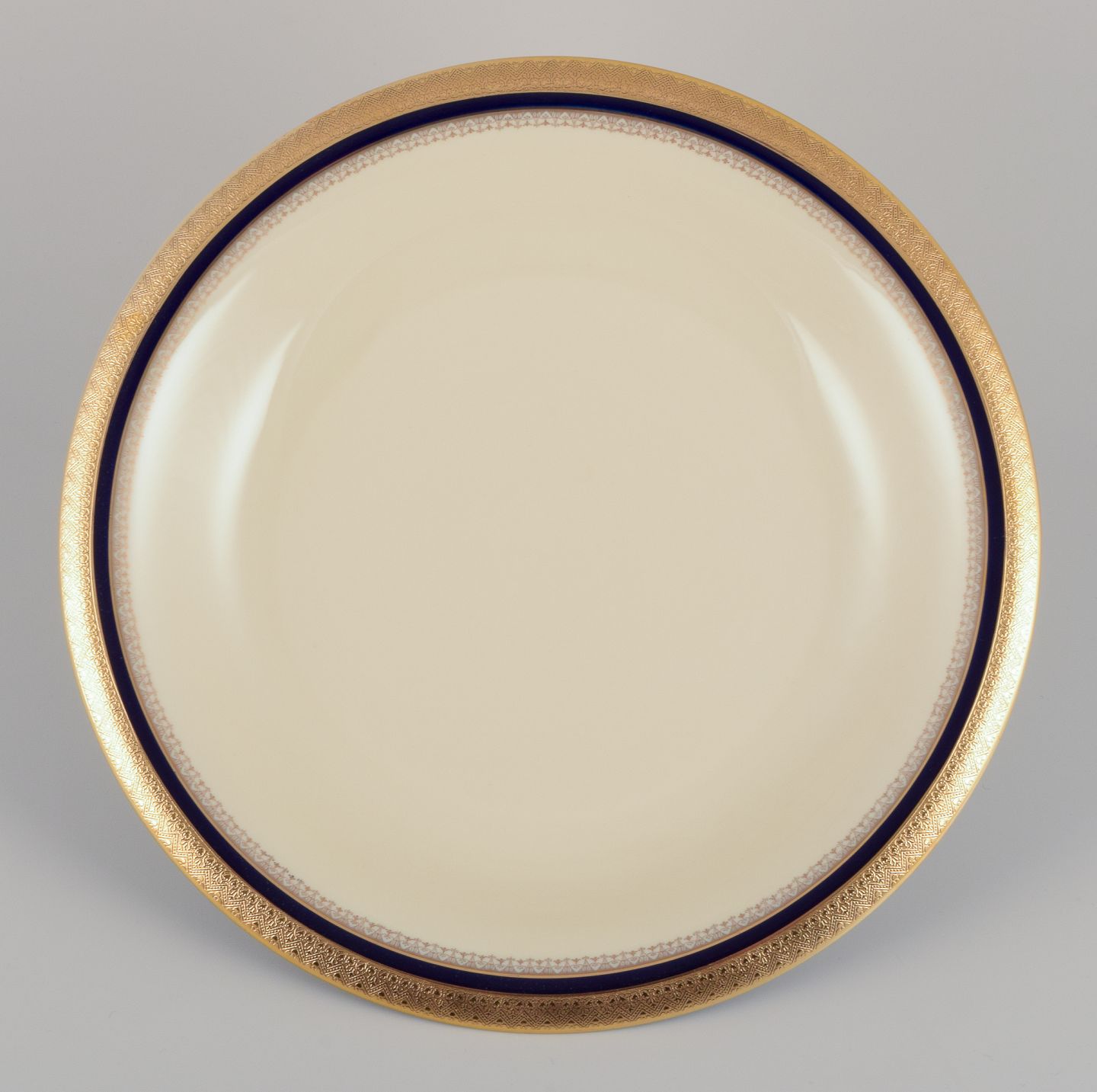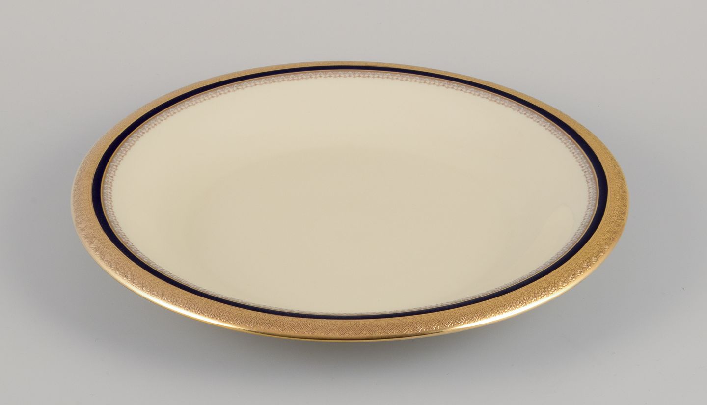 Hutschenreuther, Germany. Large round serving platter from the "Margarete" series. Hand-decorated with gold and royal blue.