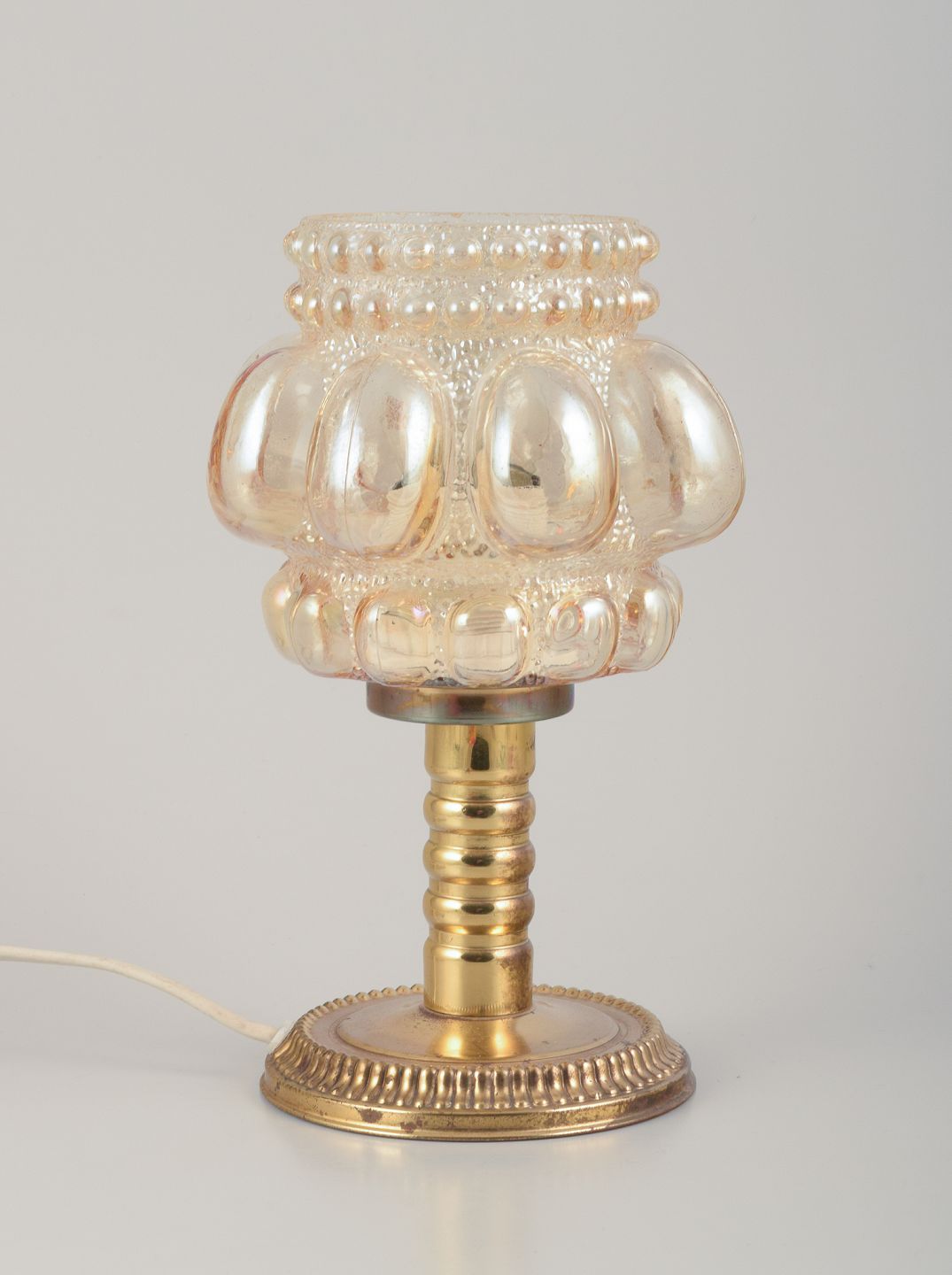 Helena Tynell, Finnish glass artist, for Limburg. Designer table lamp in clear glass and metal. Matte glass with bubbles. From the 1970s. Perfect condition. Dimensions: D 15.0 cm x H 24.0 cm.