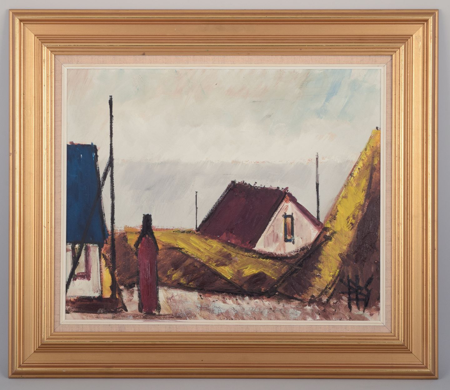 "Figure by Houses and Sea".