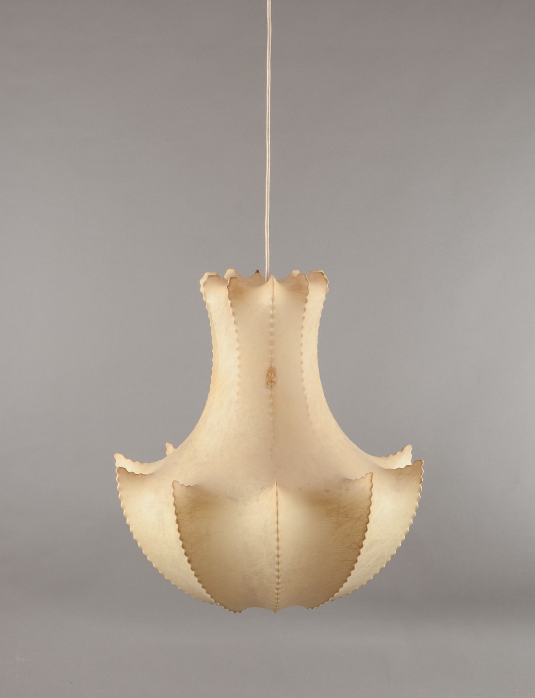 Achille Castiglioni, "Cocoon" large ceiling lamp in resin. 1960/70s. Italian design. In very good condition with signs of use. Dimensions: D 60.0 cm x H 60.0 cm.
