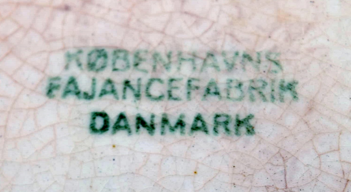 Påfuglestel fra Københavns fajancefabrik/Aluminia. Flad tallerken i fajance. 8 stk. på lager. Vi har mange dele på lager. Måler : 22,5 cm. I flot stand.