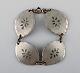 Jørgen Jensen. Danmark. Armbånd og vedhæng i tin med turkis. Moderne design, 60/70'erne. Håndlavet dansk design. Armbåndet måler 17,5 cm. Vedhænget måler 8 cm x 5 cm. I flot stand. Stemplet.